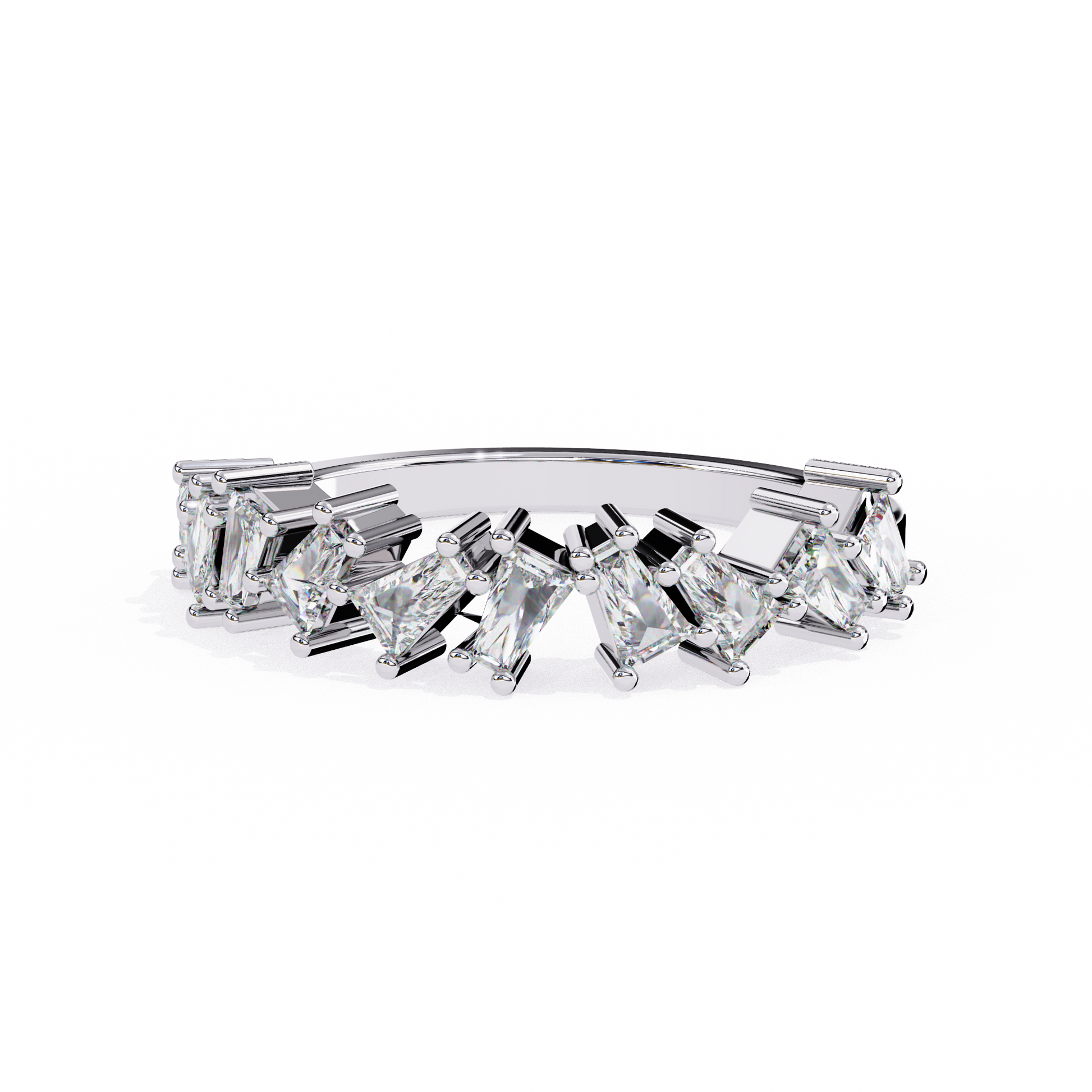 Crafted with refined precision, this elegant diamond band showcases a striking row of custom tapered baguette diamonds, each measuring 3.30 Γ 2.20 mm, carefully set to create a seamless flow of brilliance across the band. The clean geometry and sharp lines give this ring a modern yet timeless presence, highlighting the beauty of each individually cut stone.