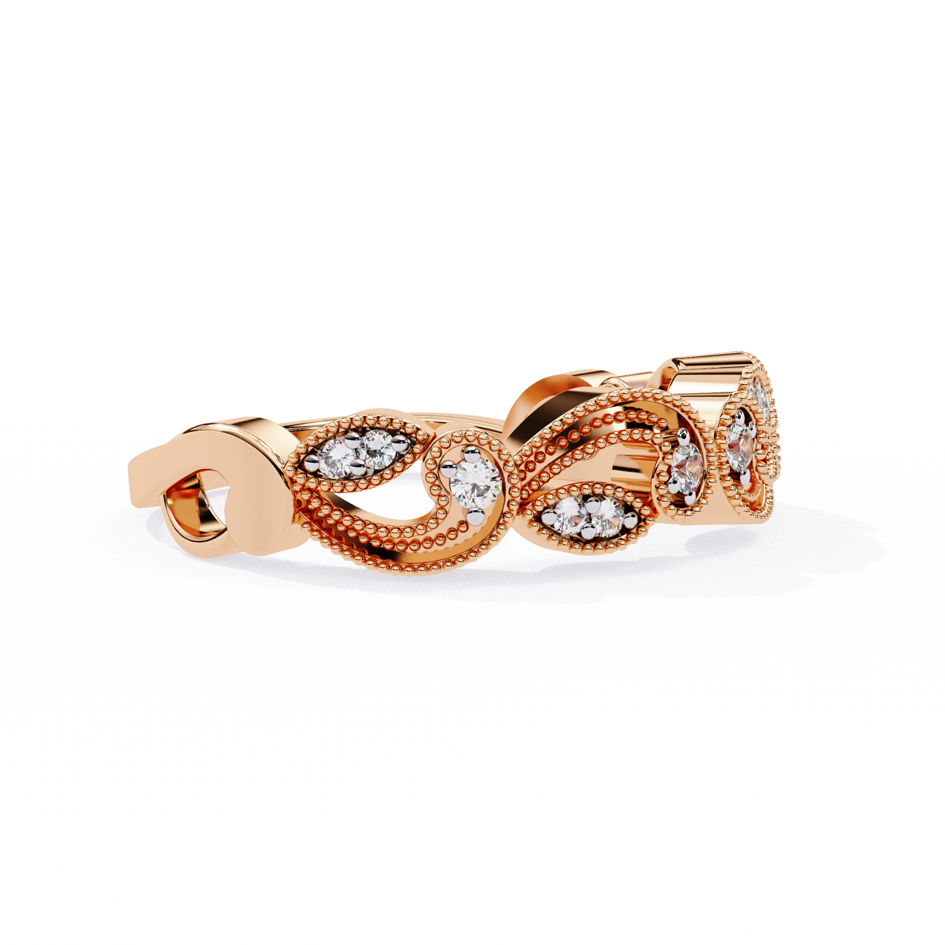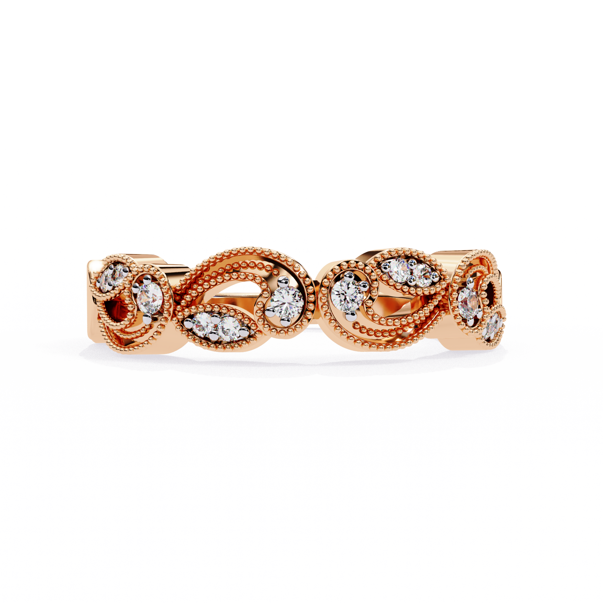 With a total diamond weight of 0.12 Carats, this ring is delicate yet eye-catching—perfect as a wedding band, stacking ring, or a refined standalone piece. Designed for comfort and lasting beauty, it’s ideal for those who appreciate subtle luxury and intricate detailing.