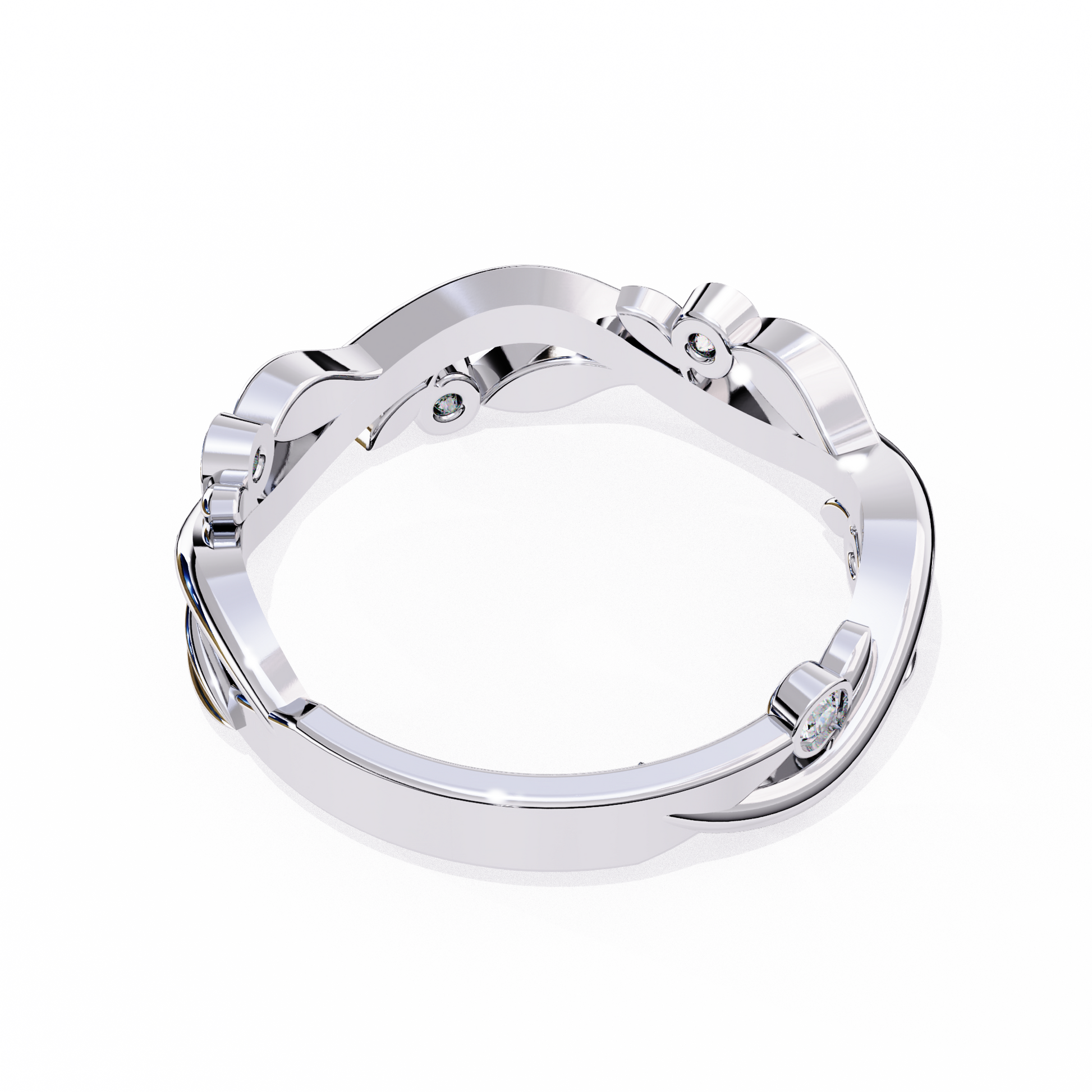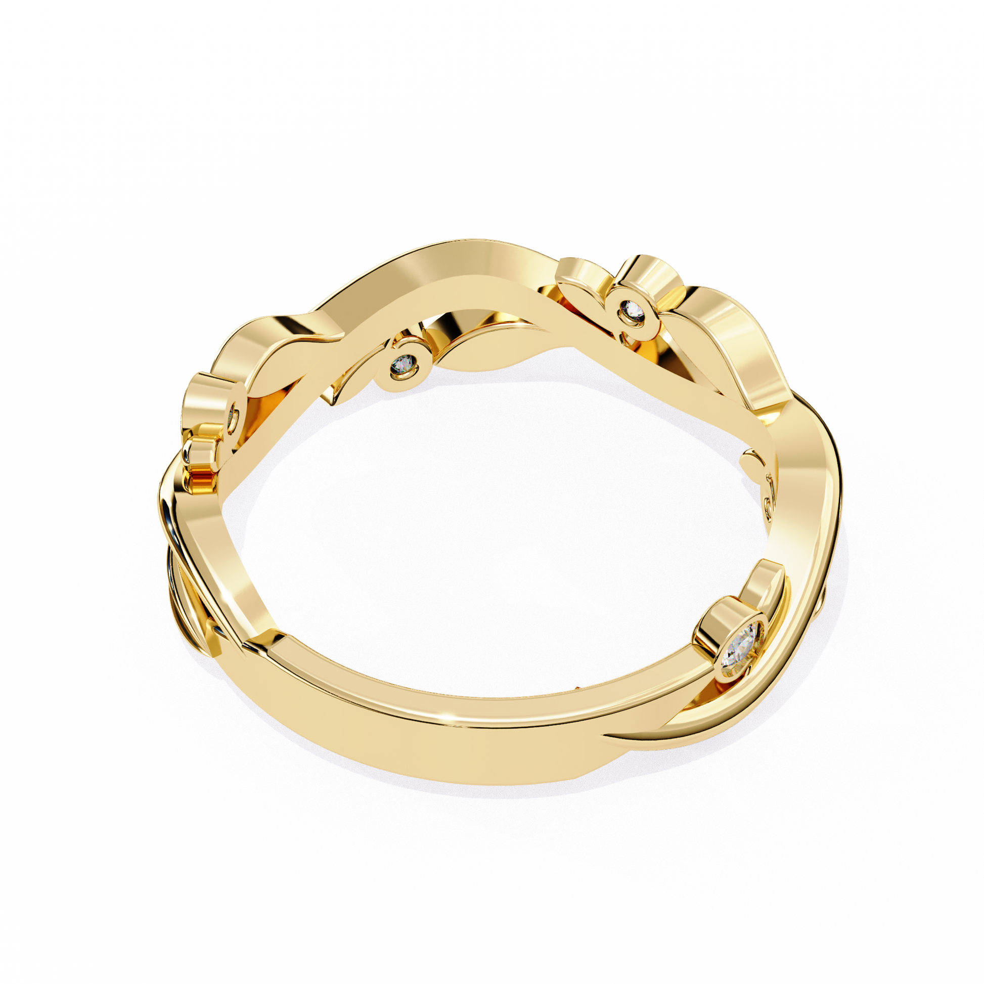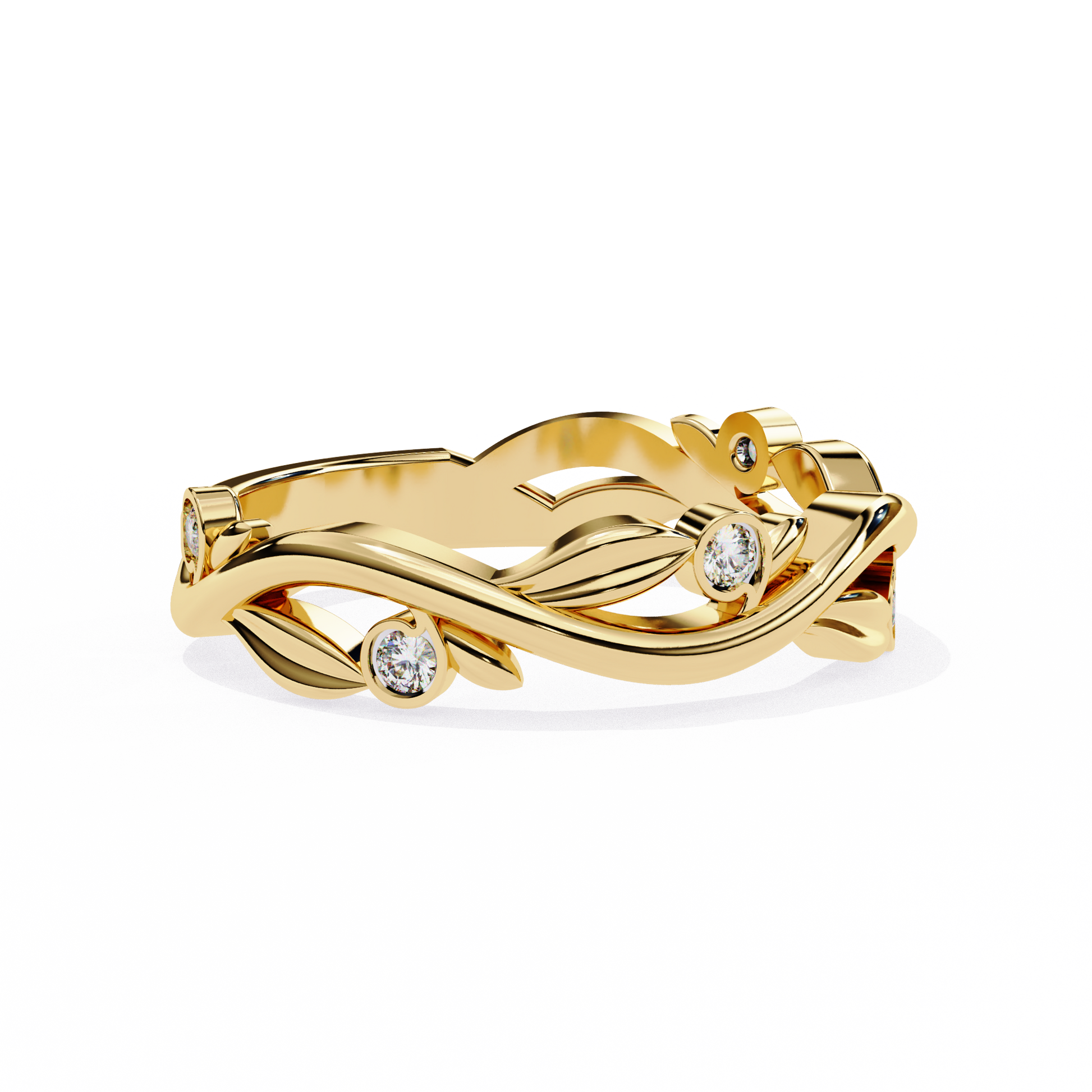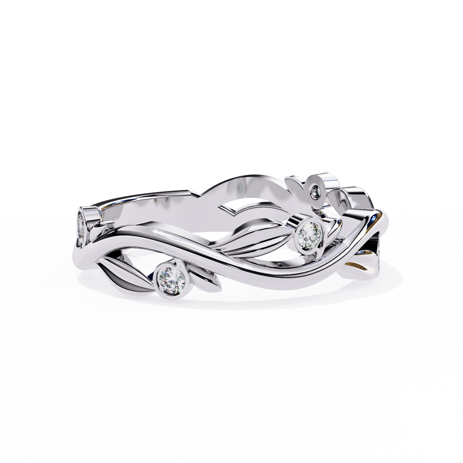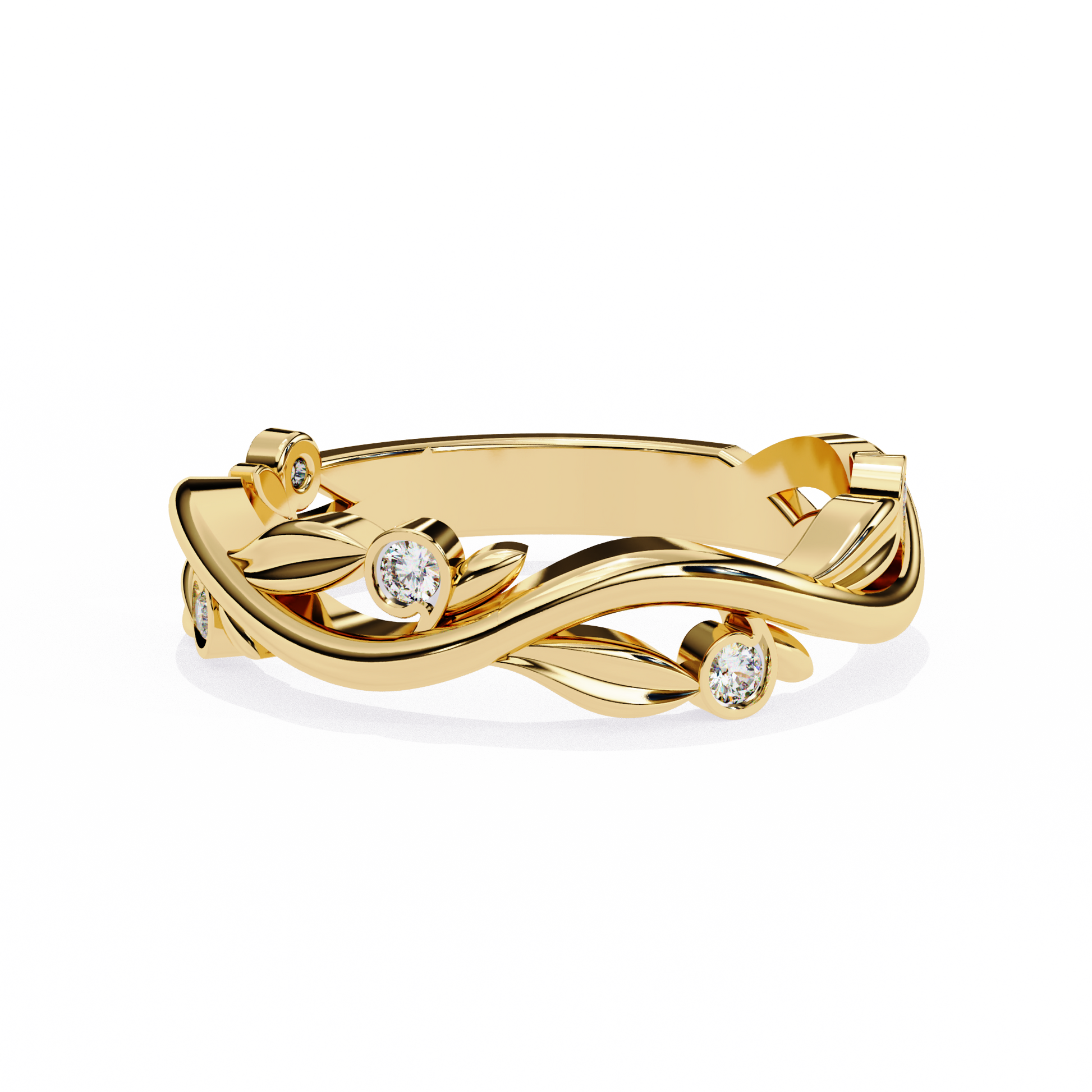 Inspired by natural movement and gentle curves, this minimalist diamond band features an elegant flowing design accented with small round diamonds set subtly along the band. The smooth, leaf-inspired contours create a refined silhouette that feels light, graceful, and timeless.