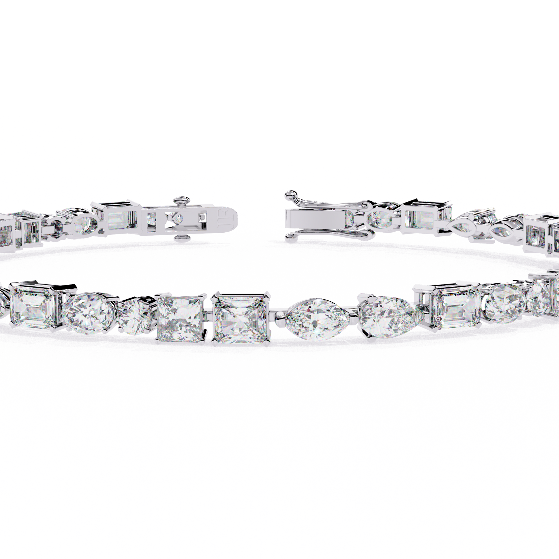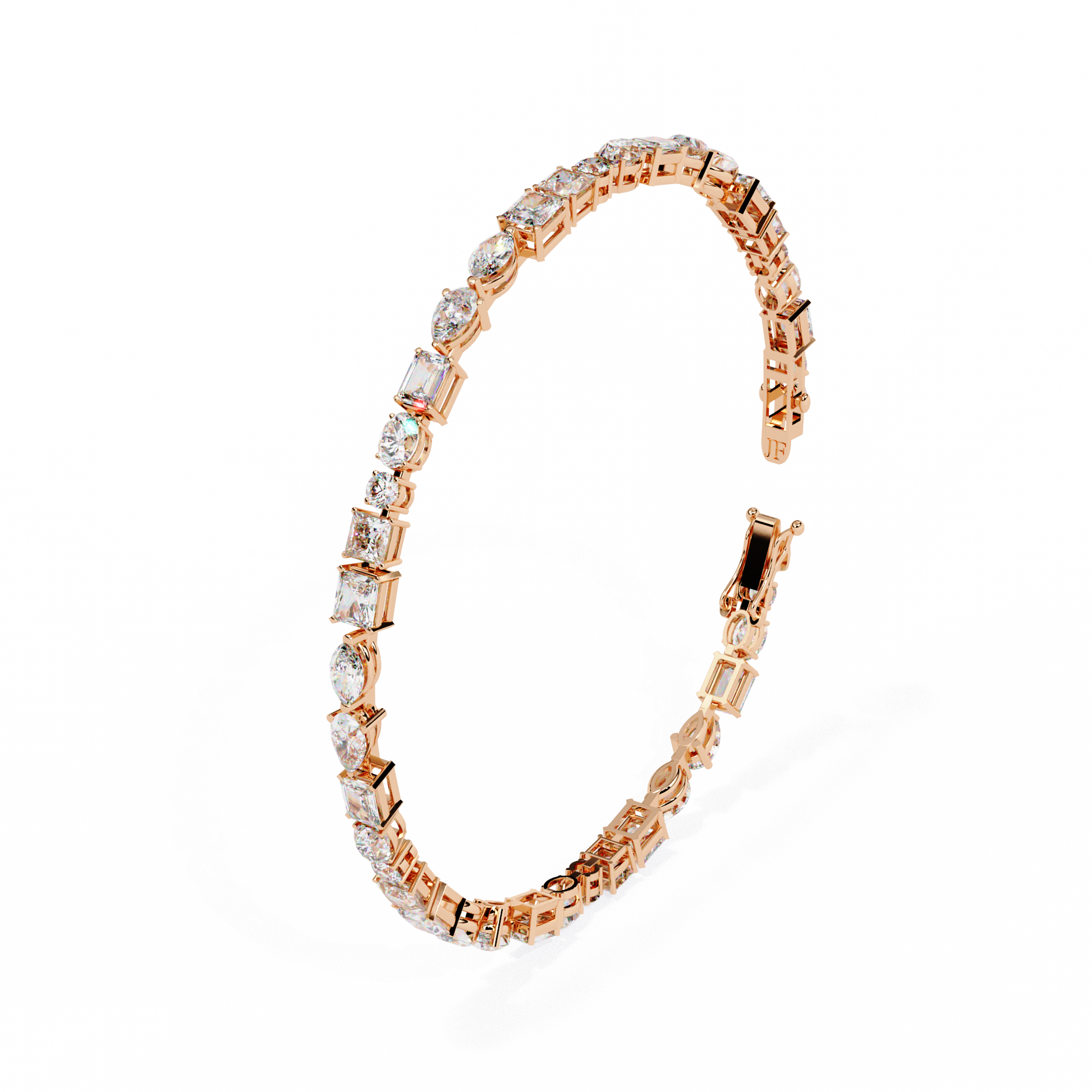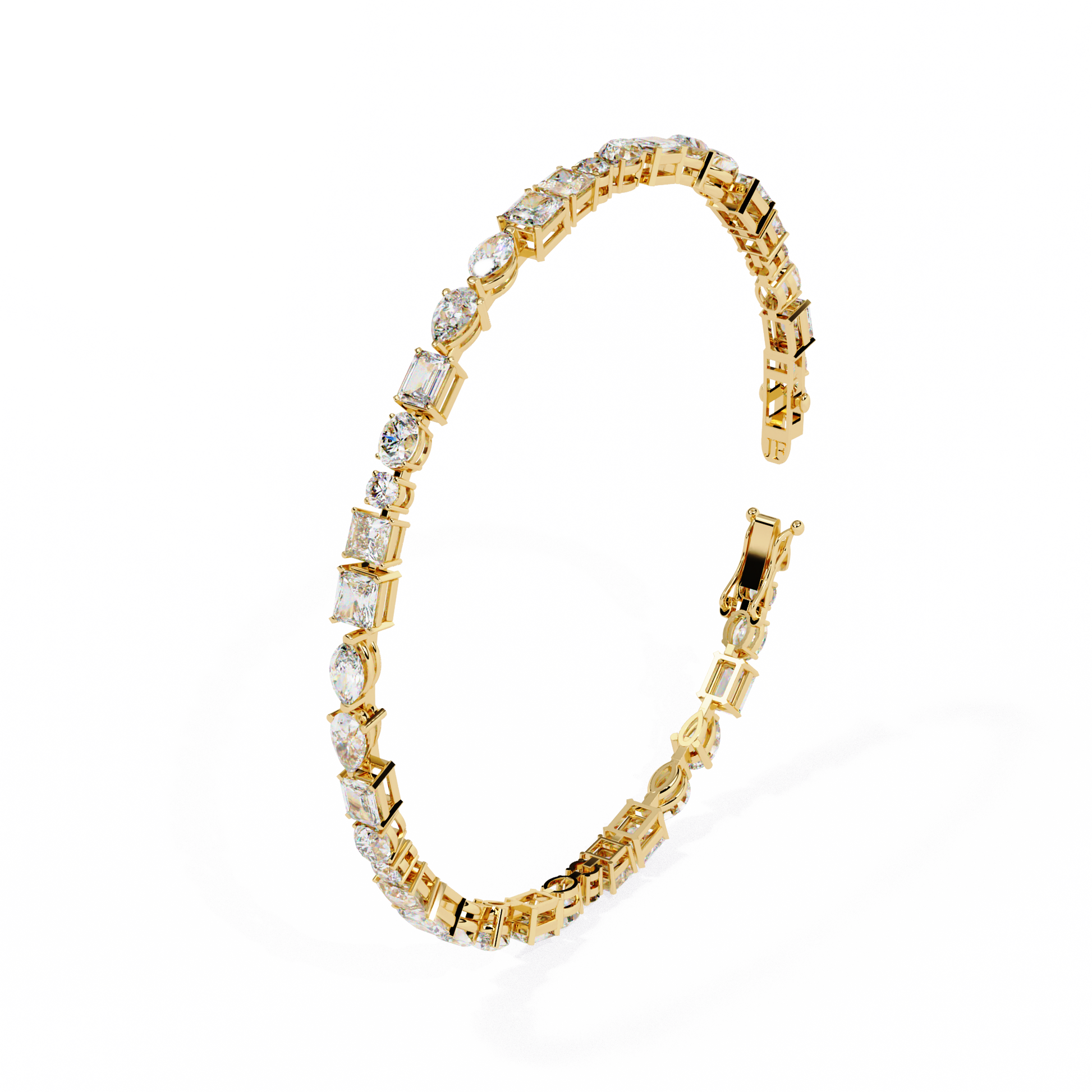 A refined harmony of multiple diamond shapes set in a seamless tennis-style layout. Each cut reflects light differently, creating exceptional brilliance and a bold yet sophisticated look. A true symbol of craftsmanship and modern luxury.