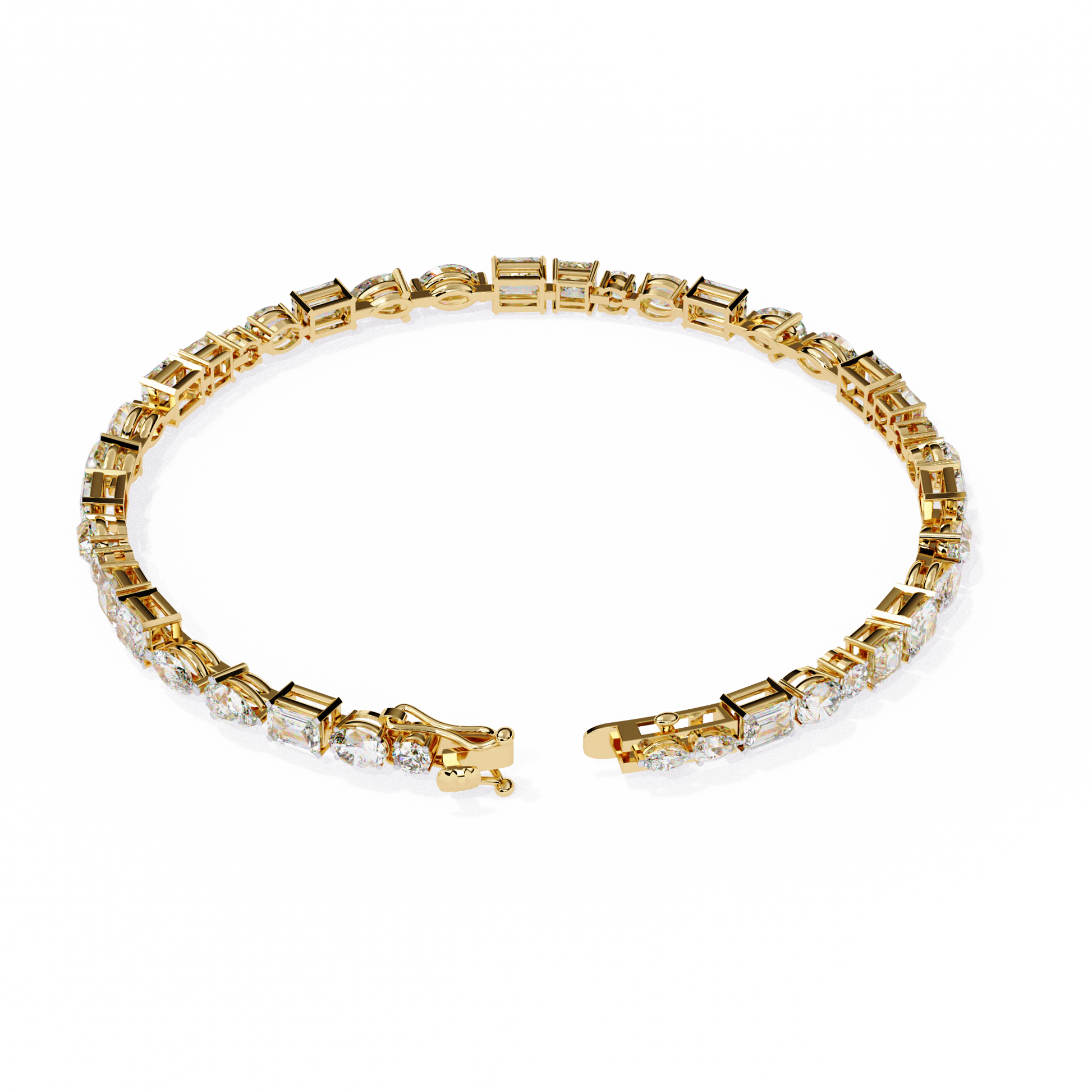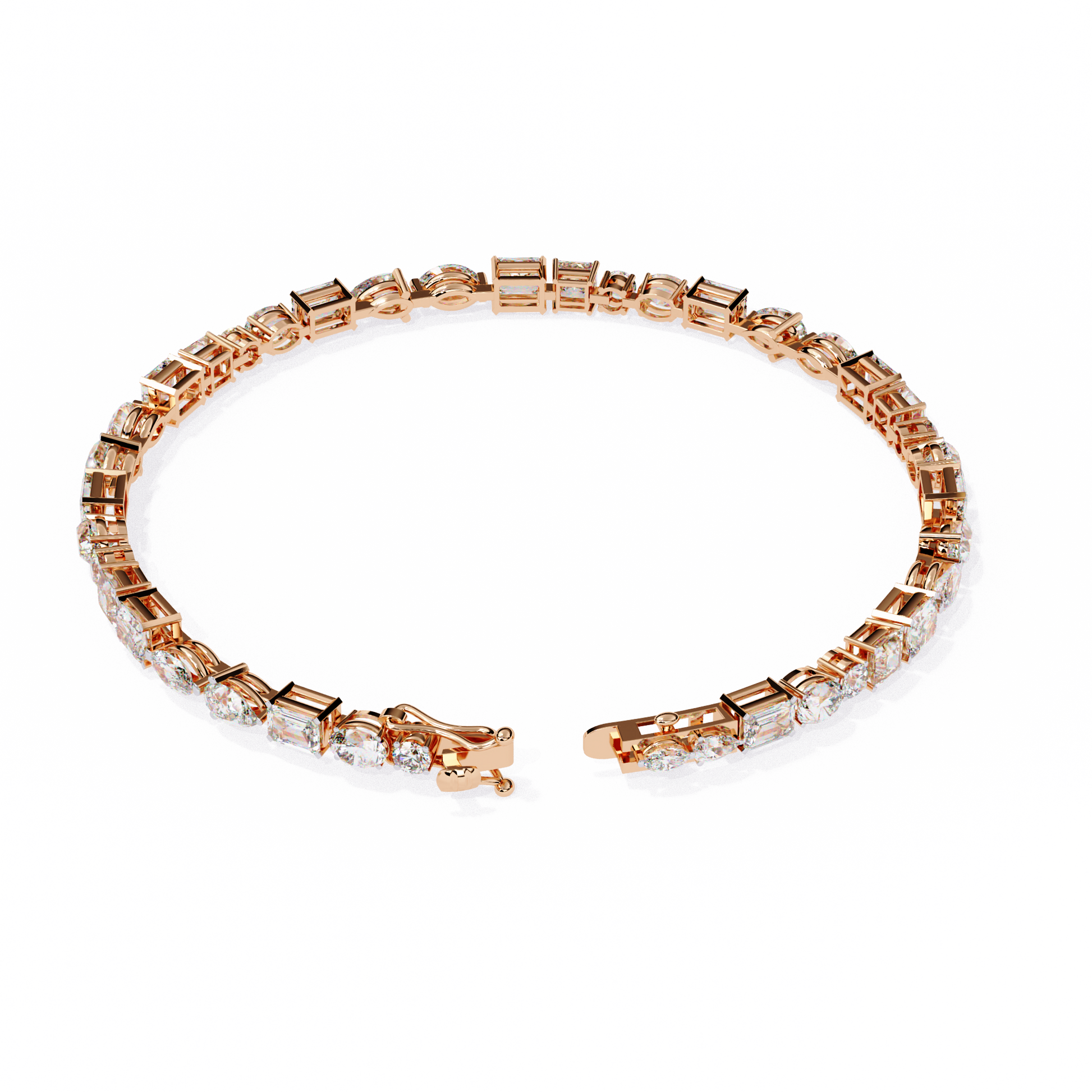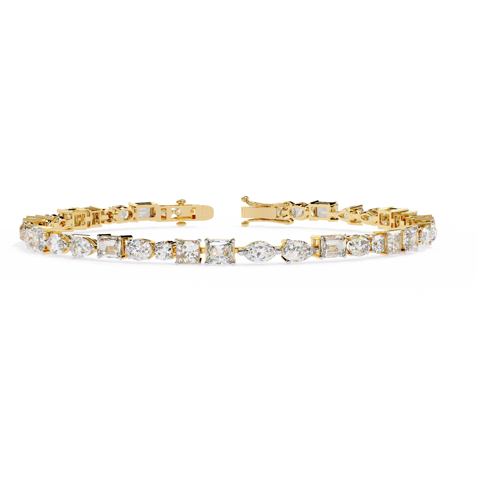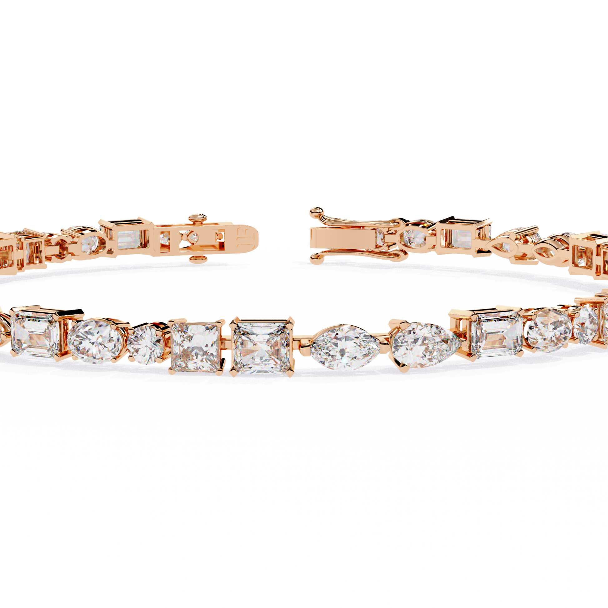 A refined harmony of multiple diamond shapes set in a seamless tennis-style layout. Each cut reflects light differently, creating exceptional brilliance and a bold yet sophisticated look. A true symbol of craftsmanship and modern luxury.