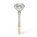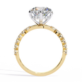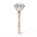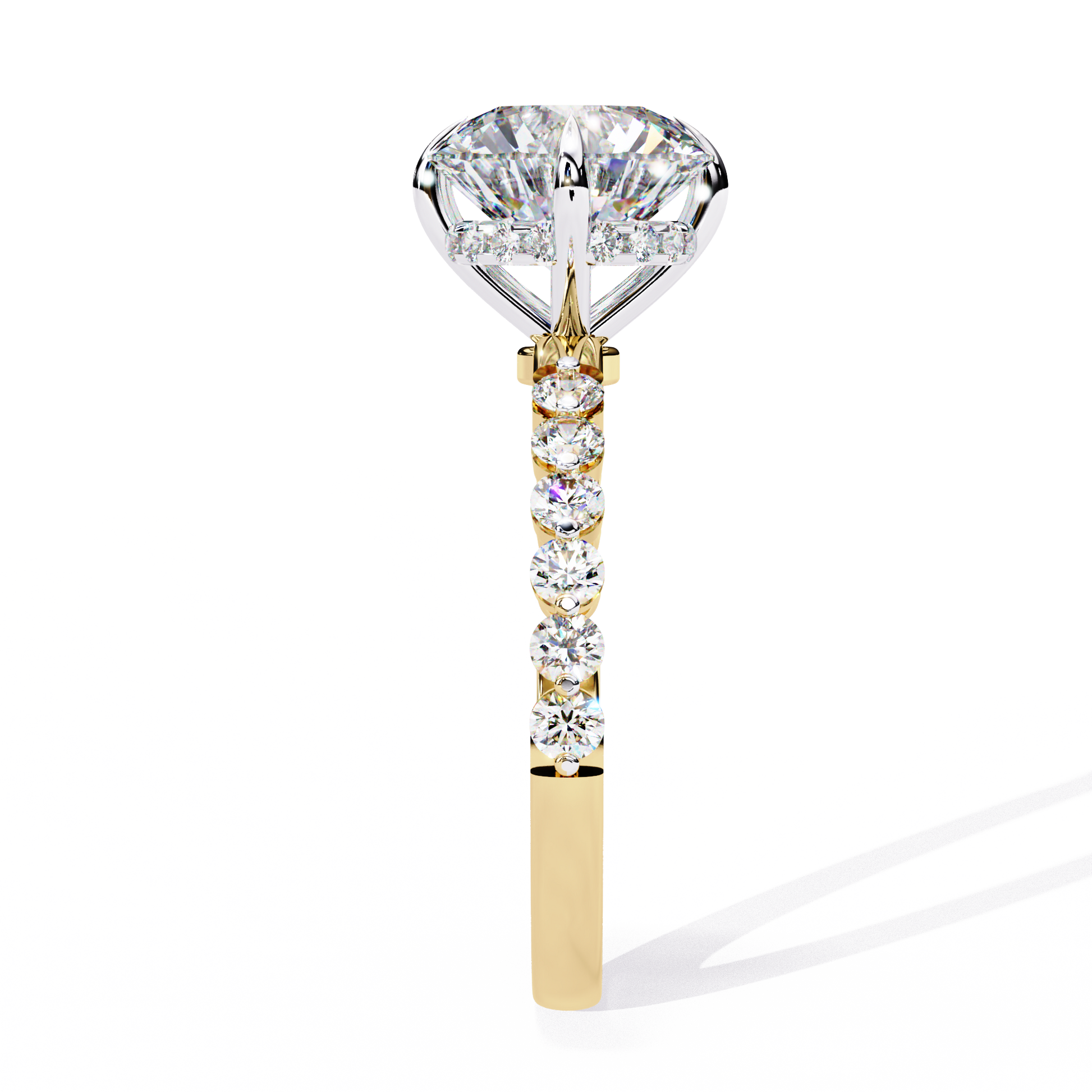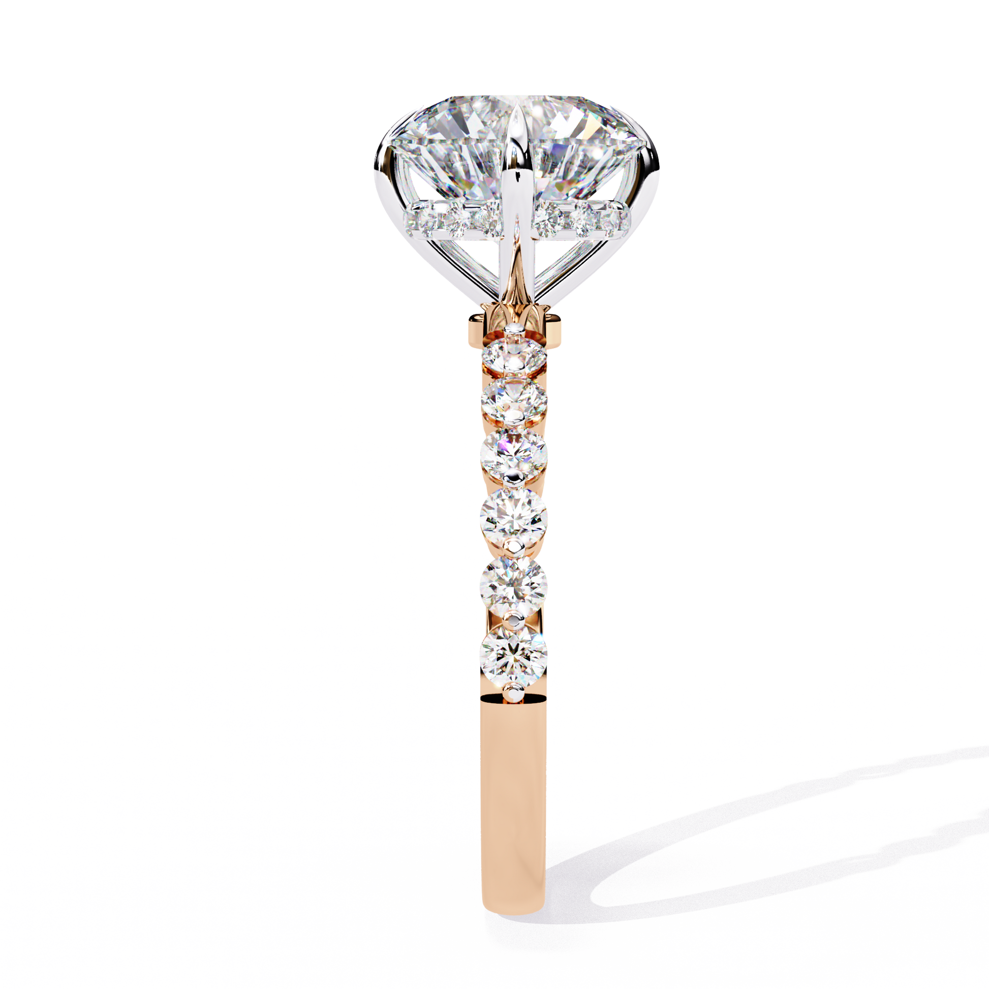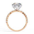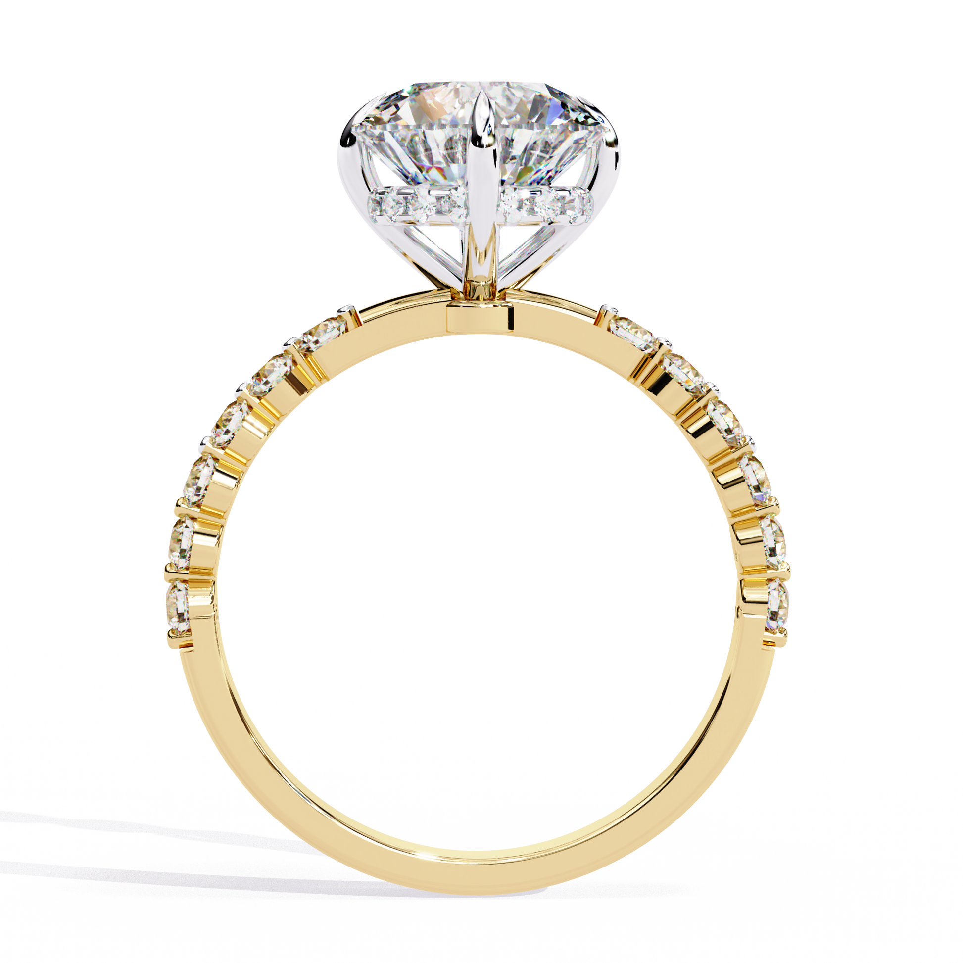 This timeless engagement ring features a stunning 2.00 Ct round brilliant cut center diamond measuring 8.00 × 8.00 mm, celebrated for its exceptional fire, brilliance, and perfectly balanced proportions. The center stone is gracefully enhanced by two rows of round side diamonds, adding refined sparkle while maintaining a clean, elegant silhouette.