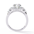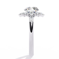 With a bold yet refined presence, this design highlights exceptional sparkle and symmetry. The halo and side diamonds add depth and dimension, making the center stone appear even more luminous. Perfect for engagements, anniversaries, or a meaningful upgrade, this ring is crafted for those who appreciate graceful luxury and enduring style.