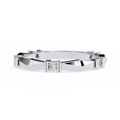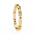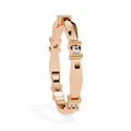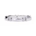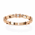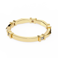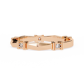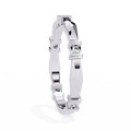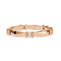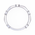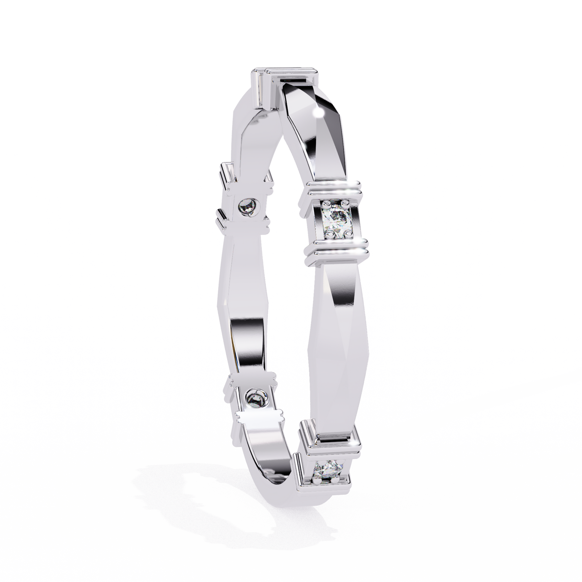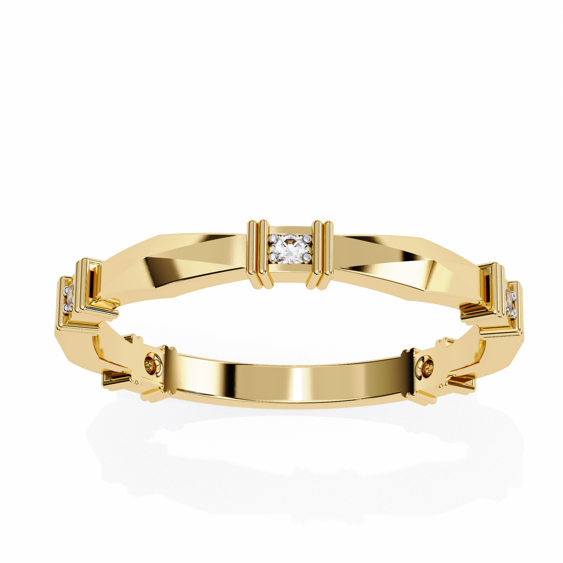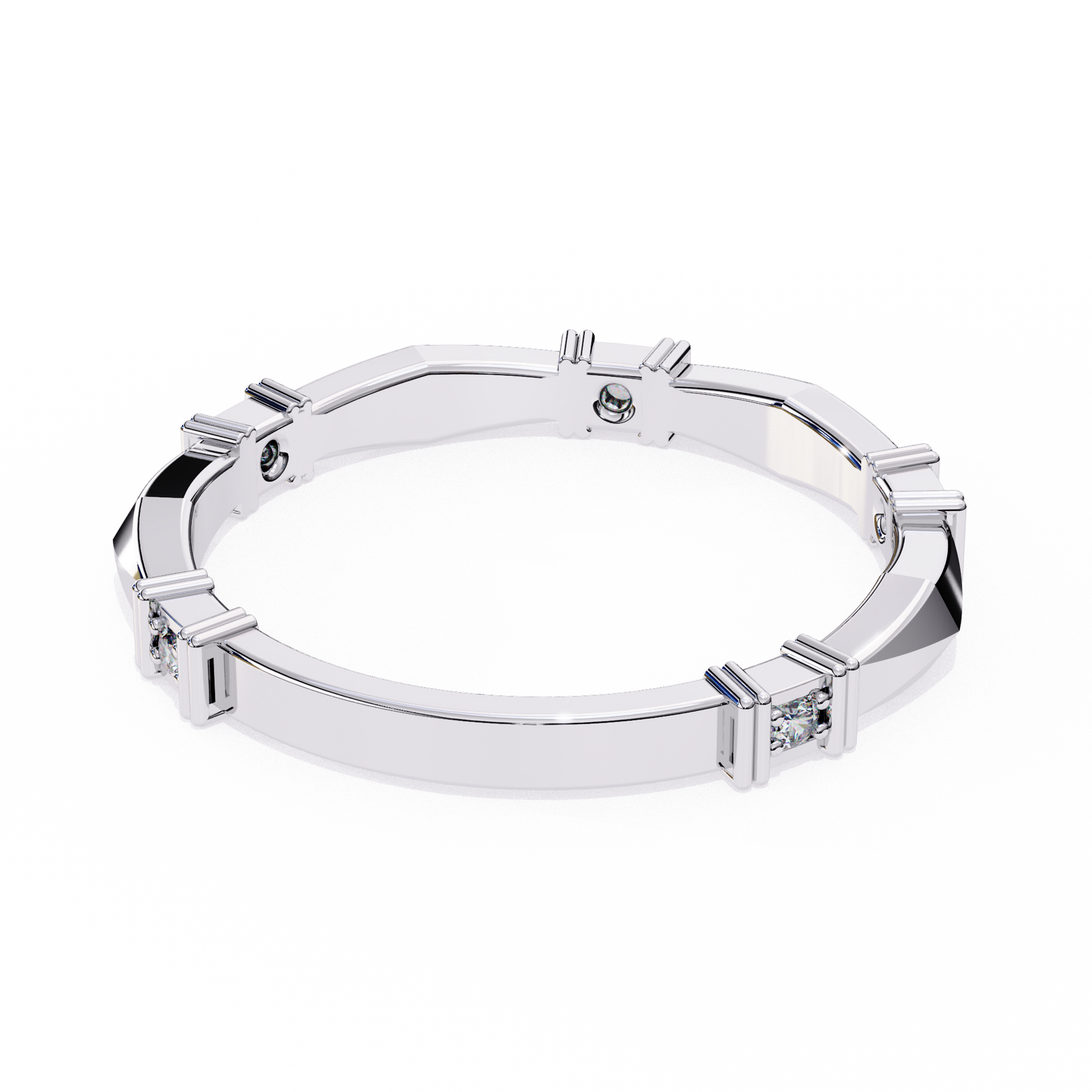 Designed with a sleek, structured silhouette, this minimalist diamond band showcases clean lines accented with small round diamonds set at subtle intervals. The refined design emphasizes balance and simplicity, offering a quiet sparkle that complements the metal’s polished finish.