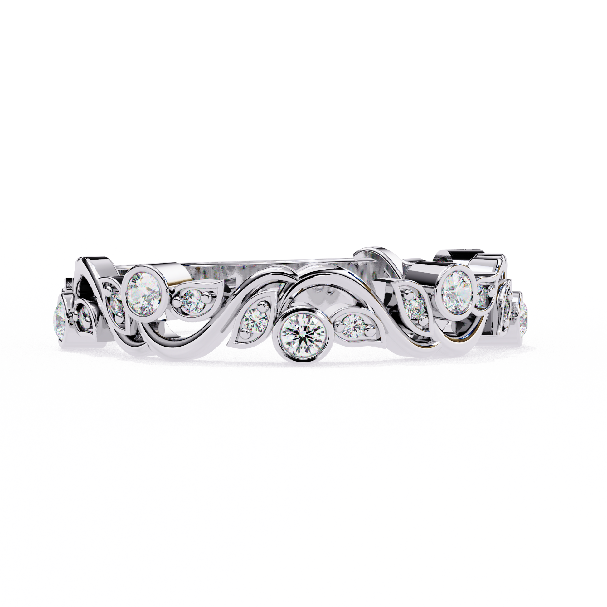 This elegant diamond band features a soft wave-inspired design π, crafted with smooth curves that flow beautifully around the finger. Carefully placed round diamonds β¨ add a gentle sparkle, creating a refined look thatβs perfect for everyday wear or stacking.