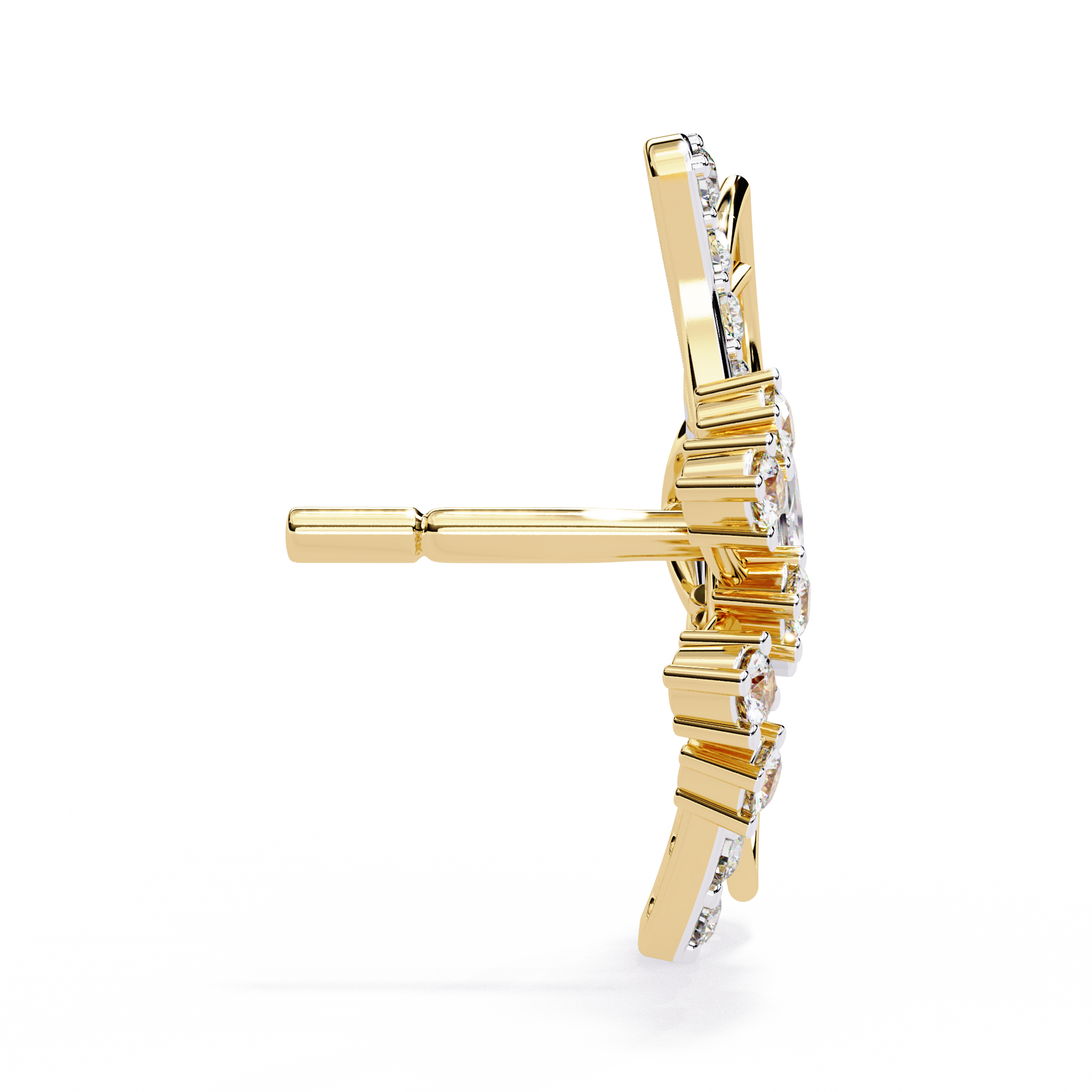 A whimsical tribute to nature’s grace, these designer butterfly earrings blend intricate artistry with exceptional brilliance. Featuring a stunning marquise diamond as the focal point, the wings are adorned with a delicate mix of pavé-set rounds and a modern open-grid gold pattern that captures the light from every angle.