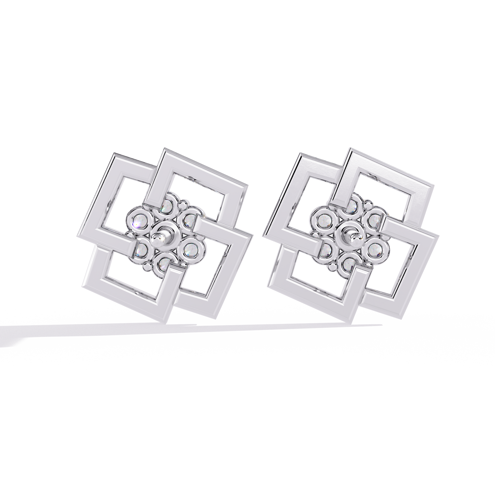Architectural Symmetry: The design features two interlocking open-work squares that create a sense of depth and structured elegance.
