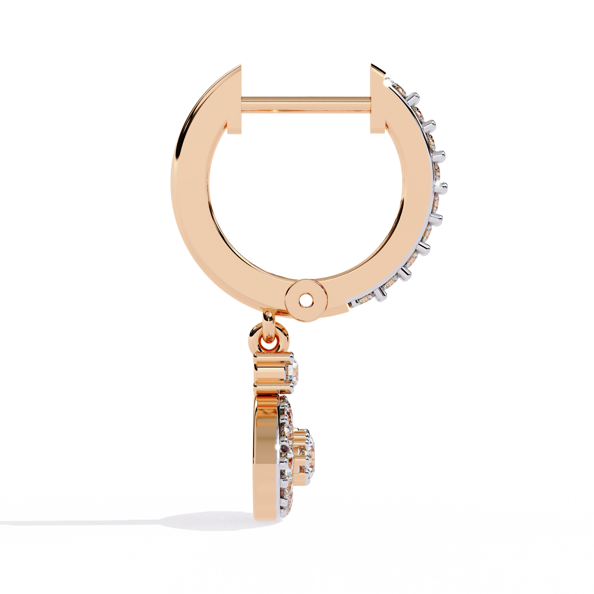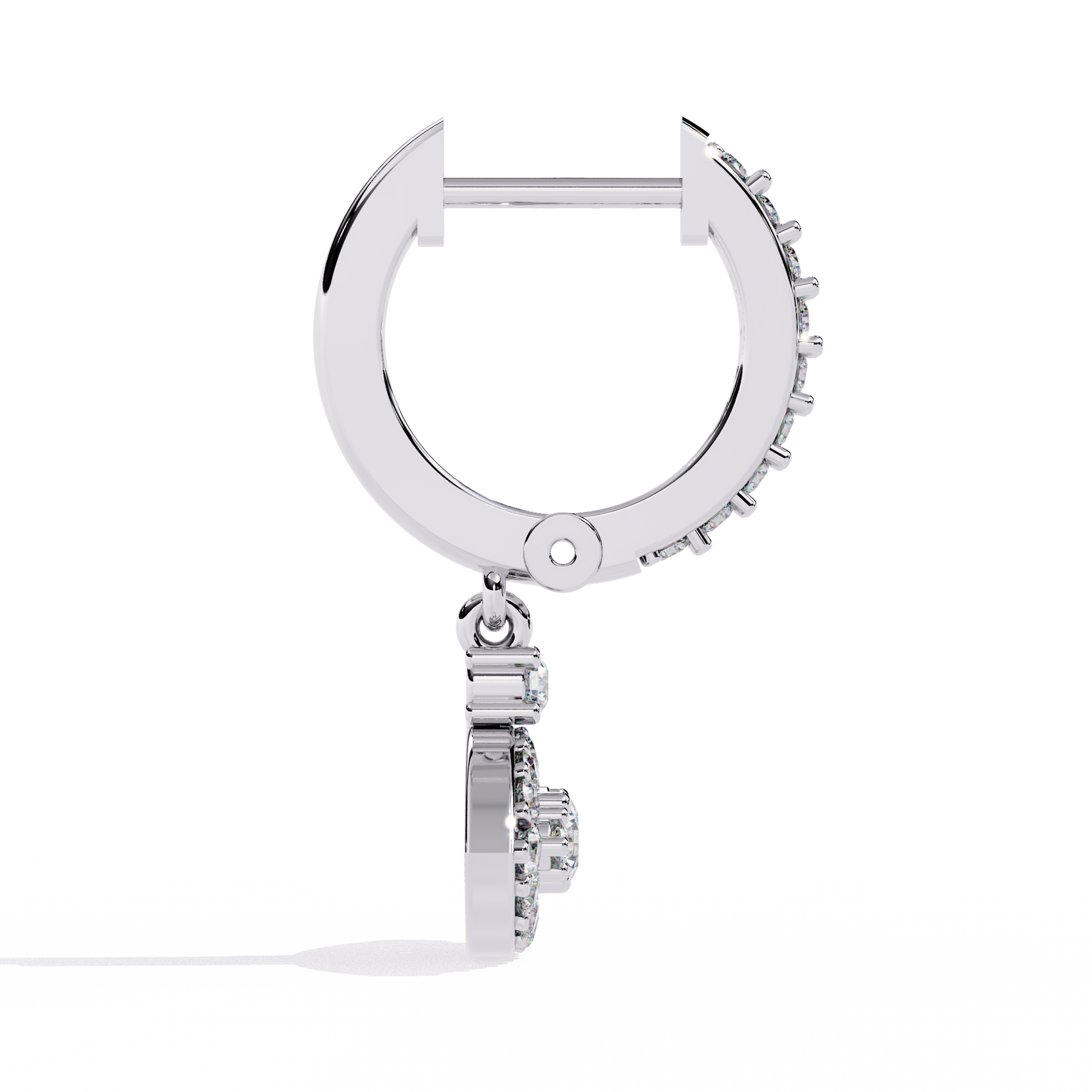 Seamless Brilliance: From the front-facing diamonds on the hoops to the intricate details of the charm, every surface is designed to maximize light return.