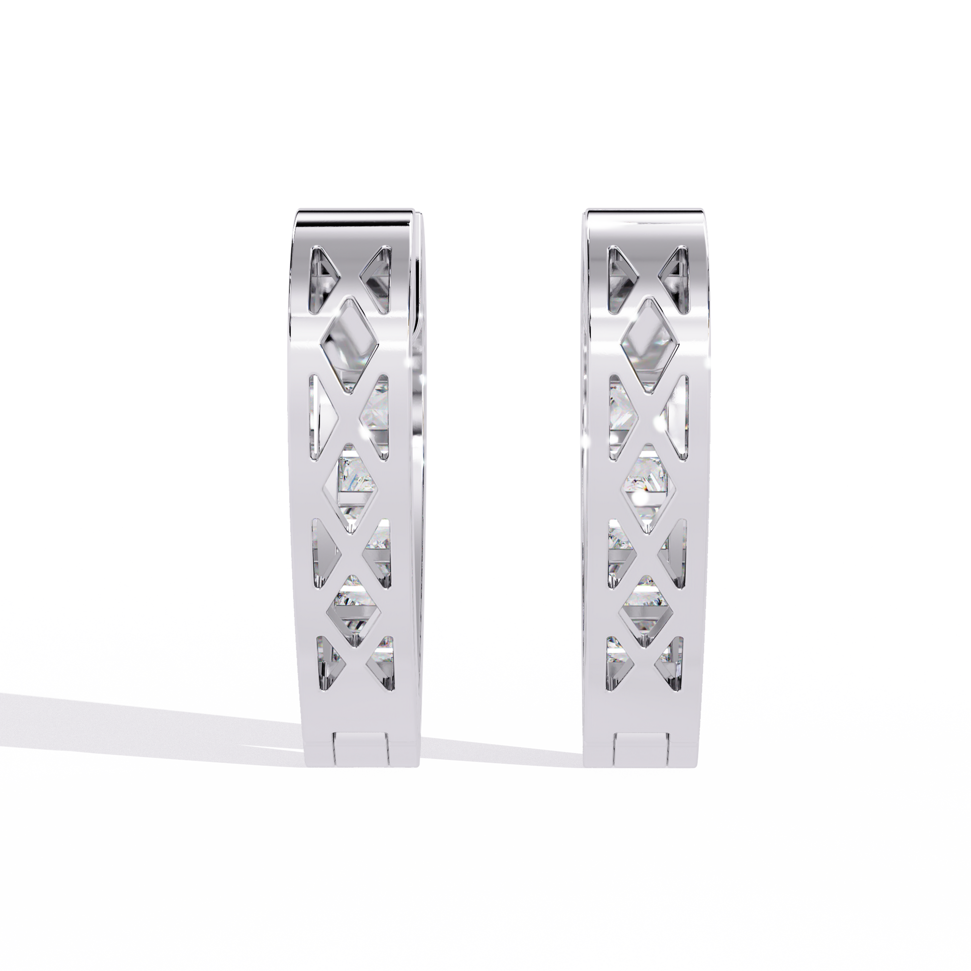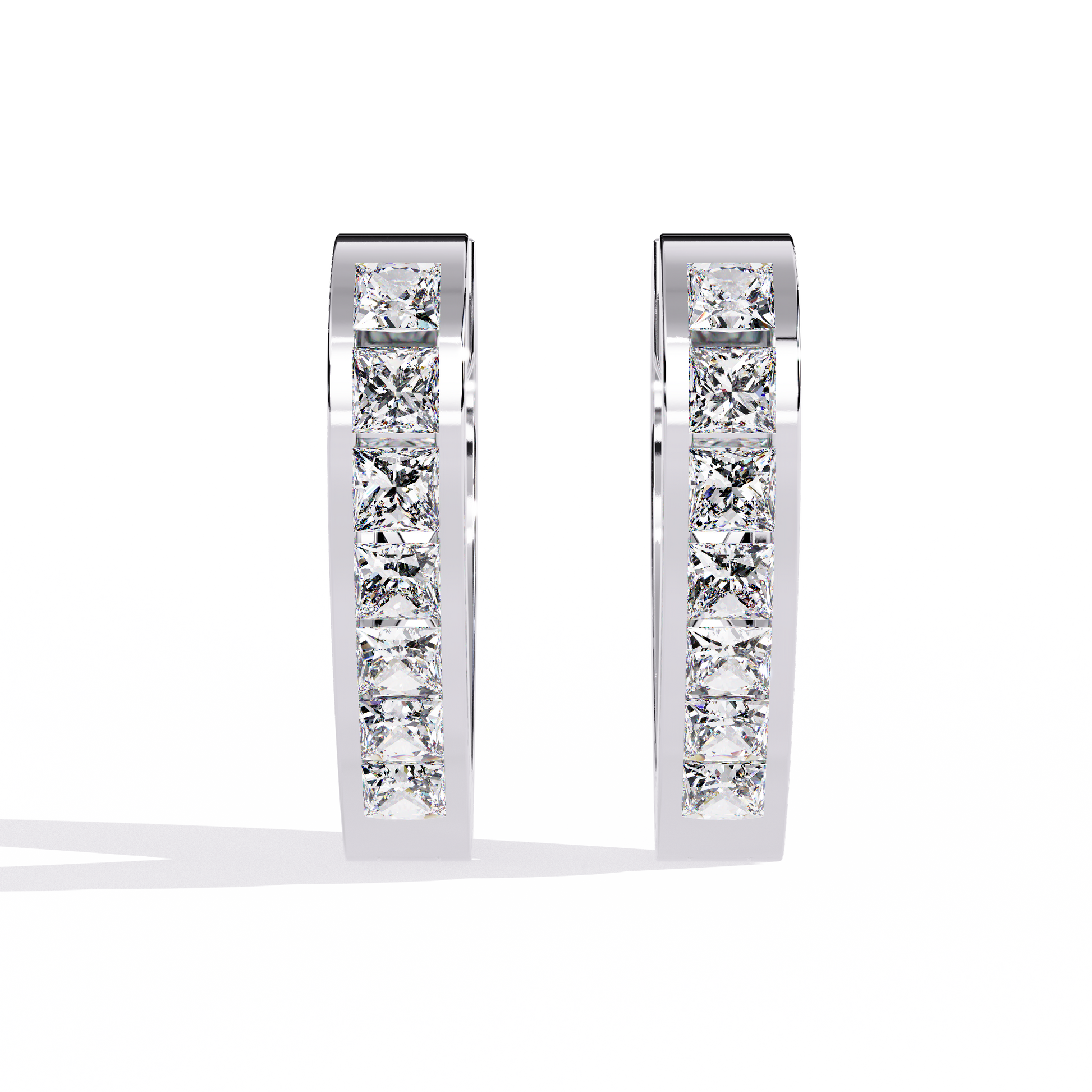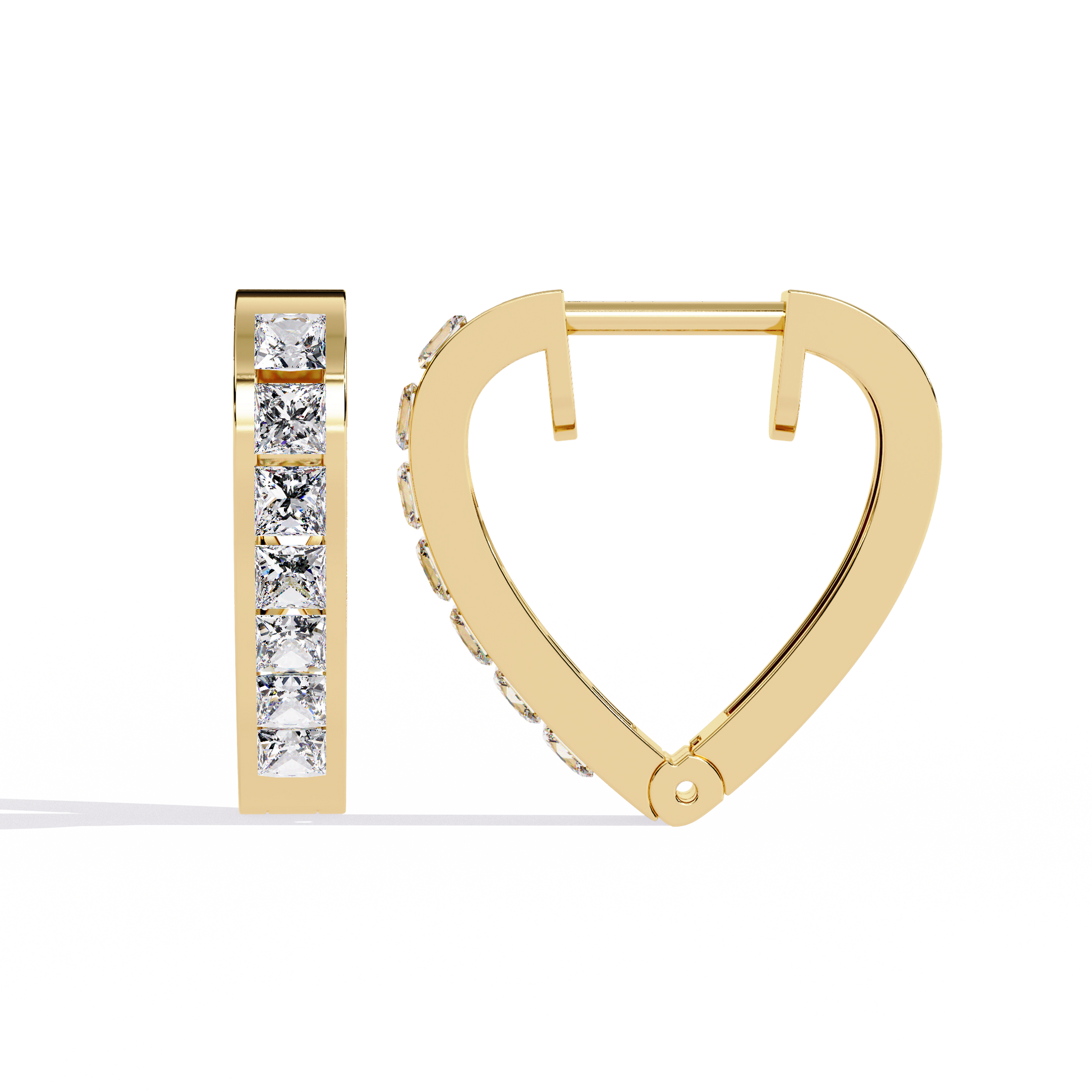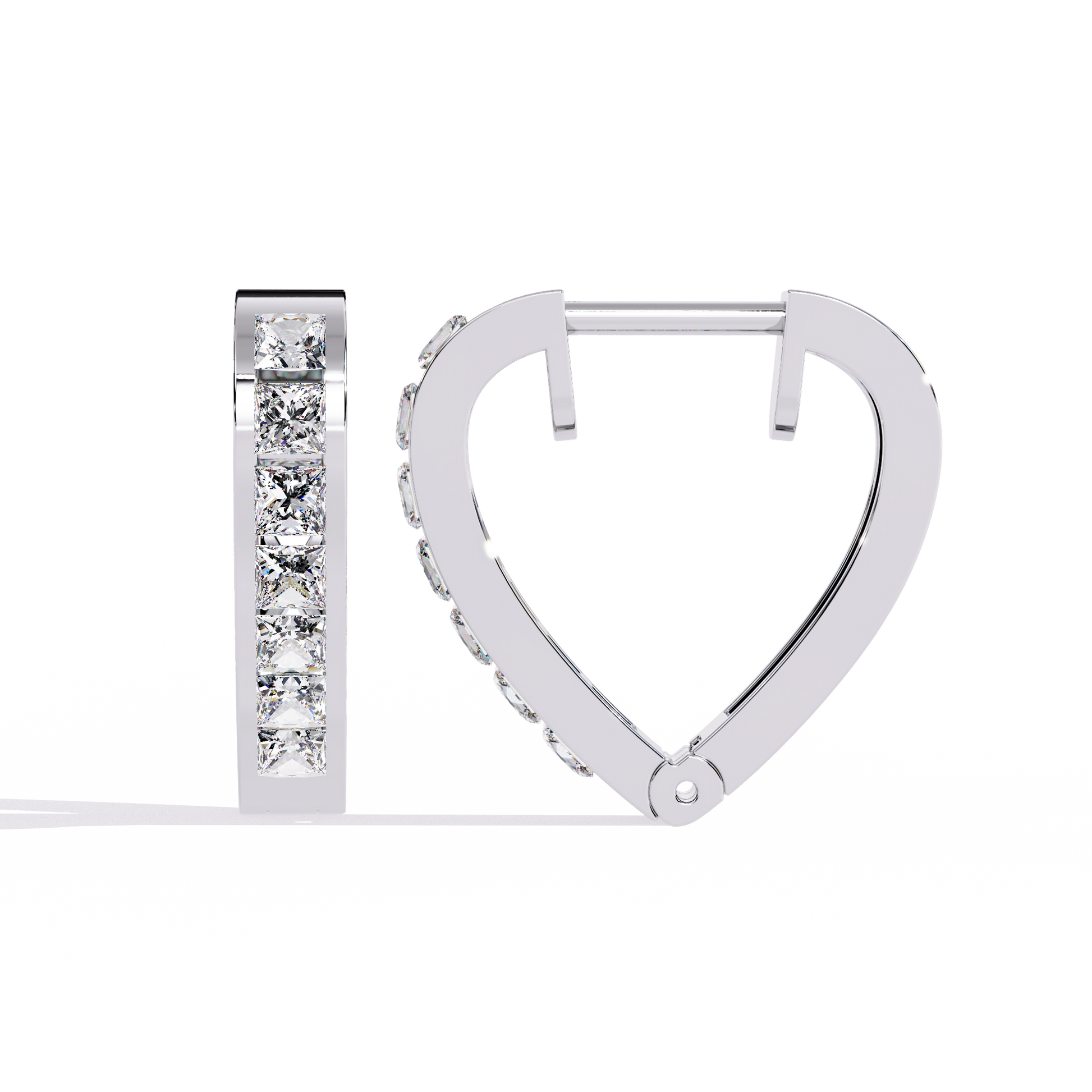 Crafted in a contemporary open-heart silhouette, these earrings showcase a seamless row of princess-cut diamonds that deliver sharp brilliance and modern geometry.