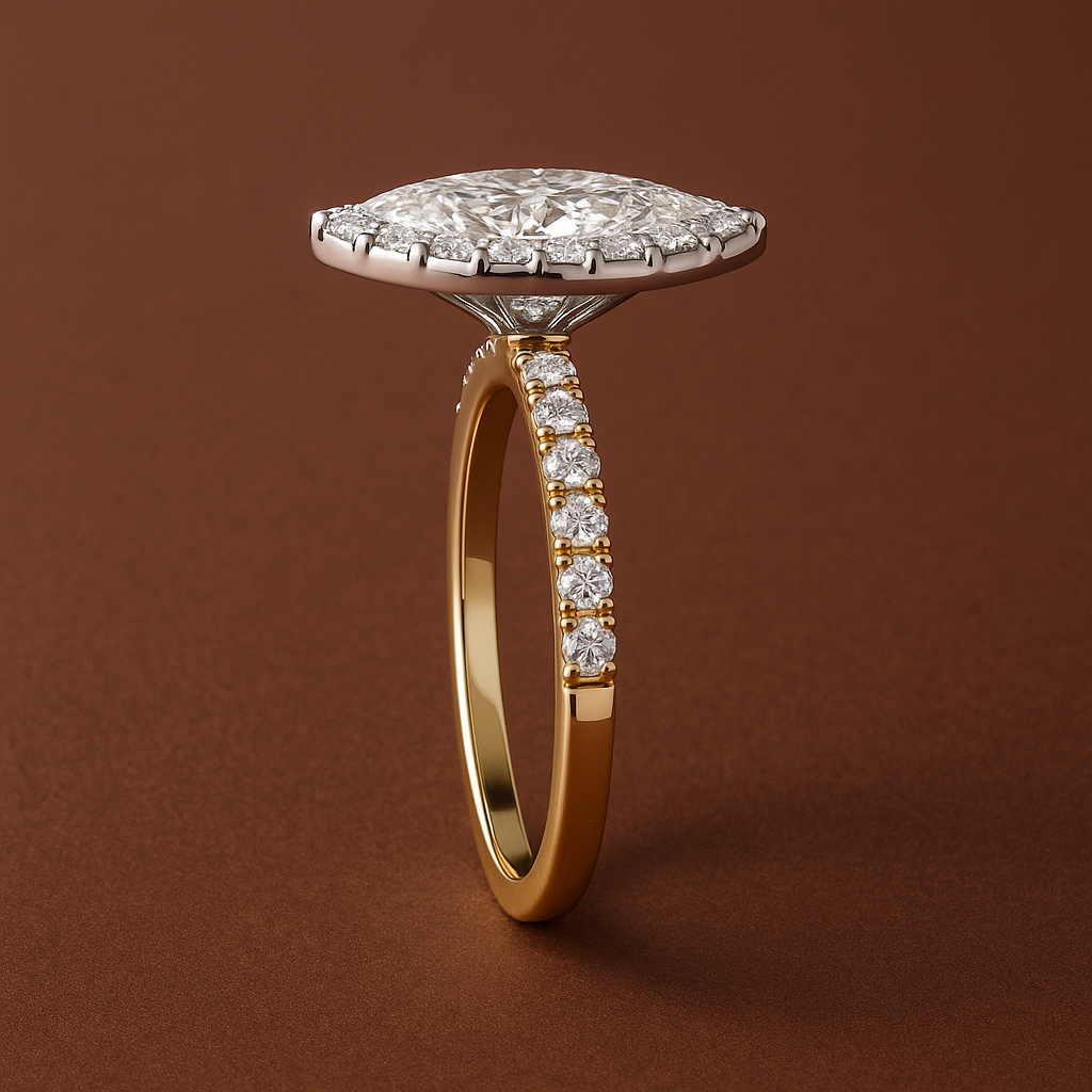 This exquisite 0.80 Carat Marquise Cut Lab Grown Diamond Ring is designed to sparkle with brilliance and grace. Featuring an IGI Certified E/F Color, VVS/VS clarity marquise cut center diamond, beautifully accented with matching round side diamonds, this ring blends modern craftsmanship with timeless romance.