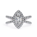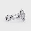 0.80 Ct Marquise Halo Diamond Dual Band Engagement Ring with 0.40 Ct side stones. IGI certified, E/F color, VVS/VS clarity. Silver & gold options.