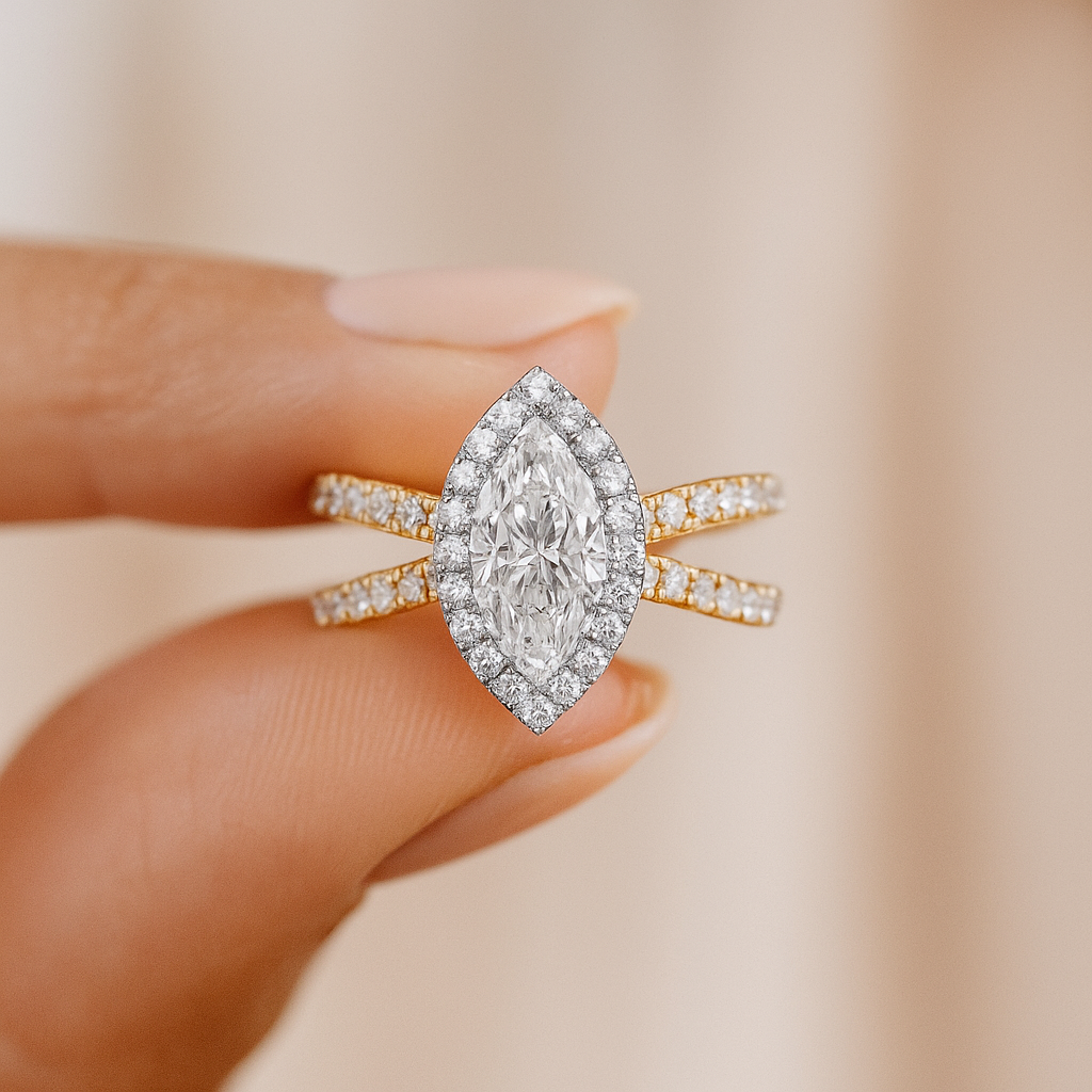 0.80 Ct Marquise Halo Diamond Dual Band Engagement Ring β IGI Certified