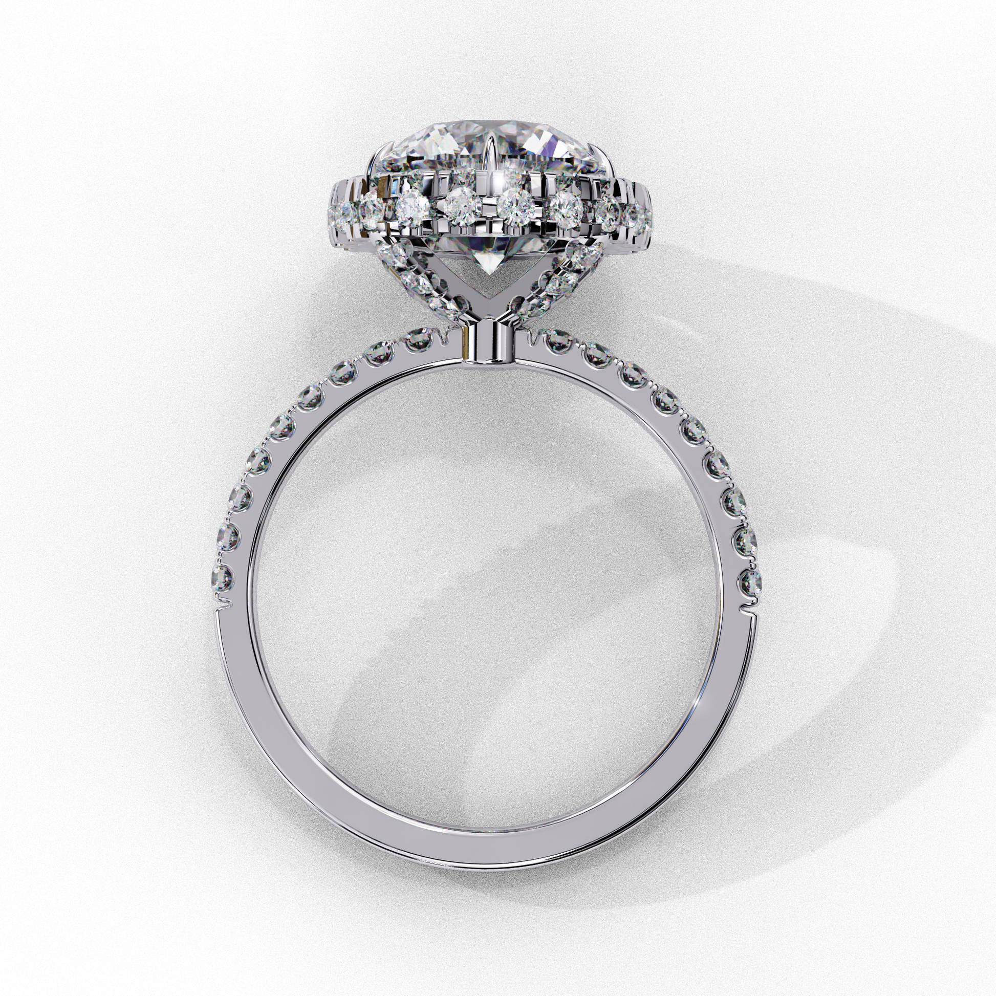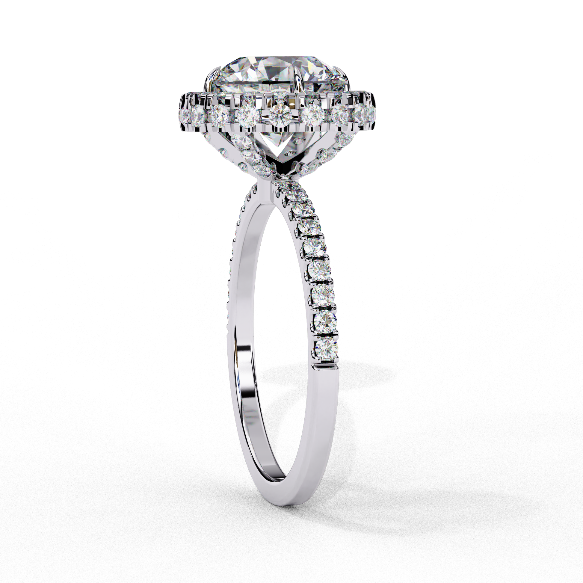 This round brilliant cut engagement ring with side diamonds is a timeless symbol of love, designed to be cherished forever.