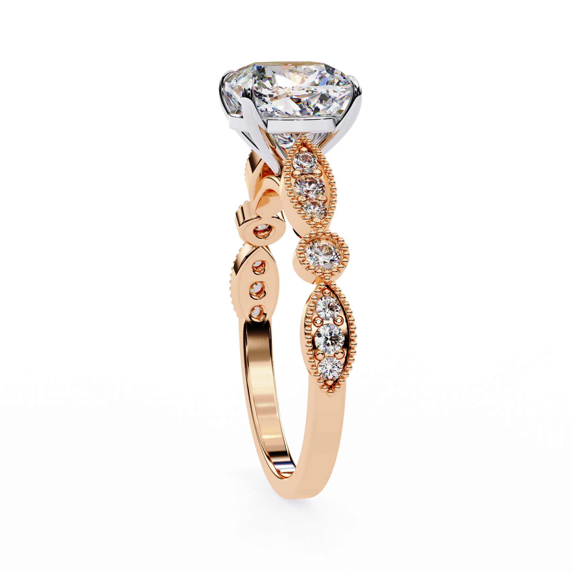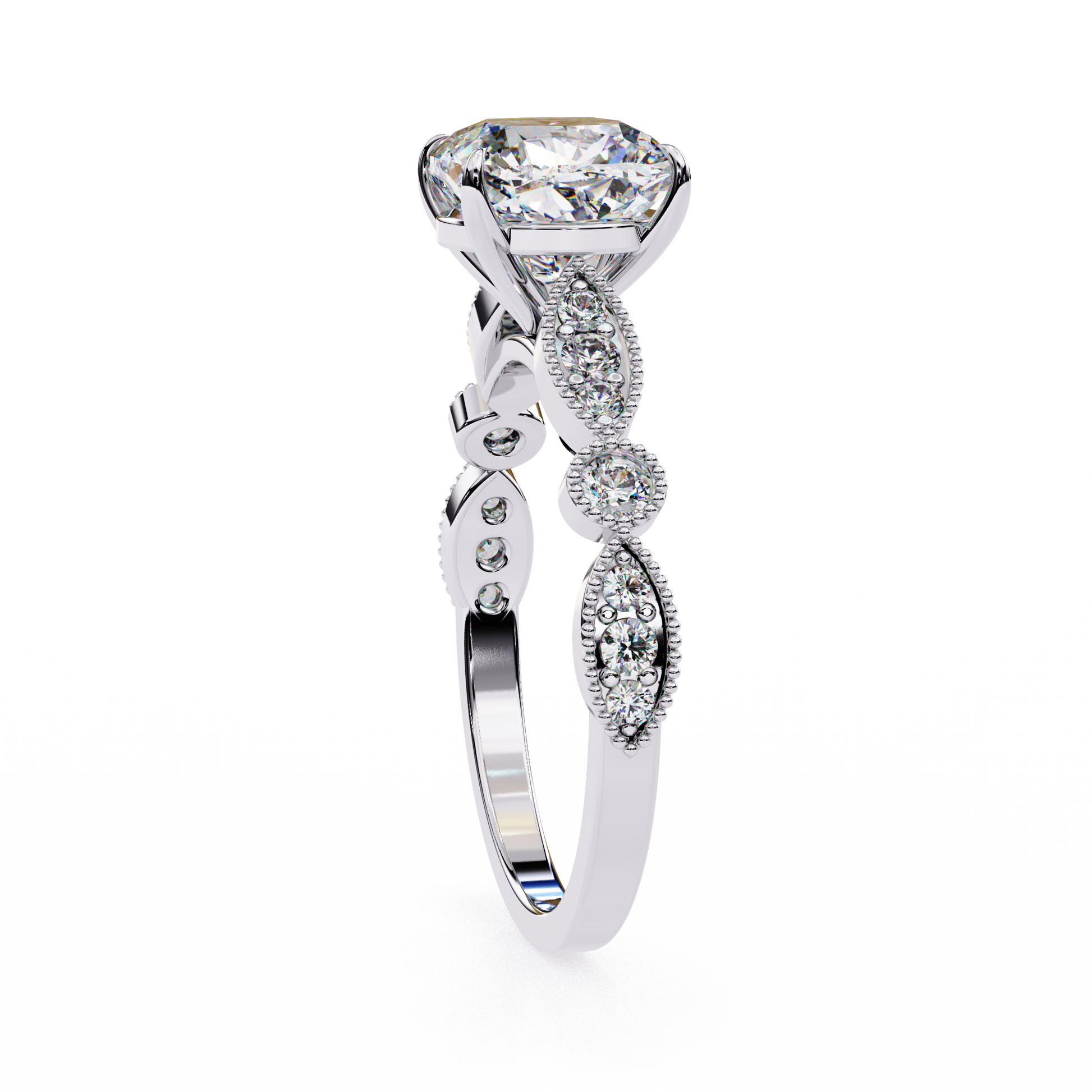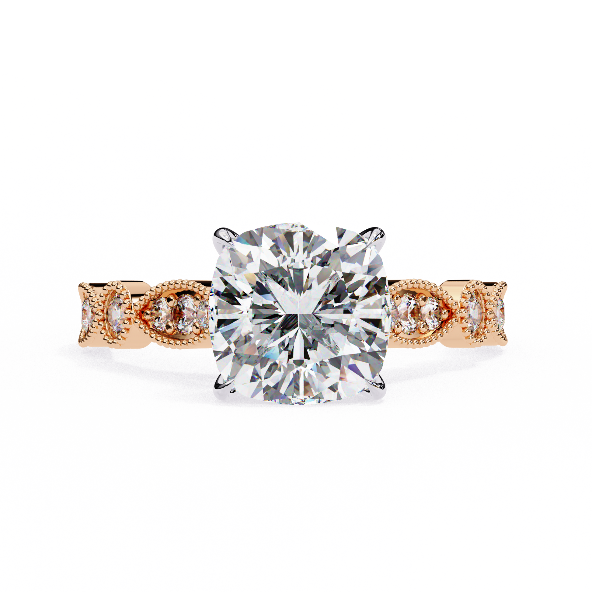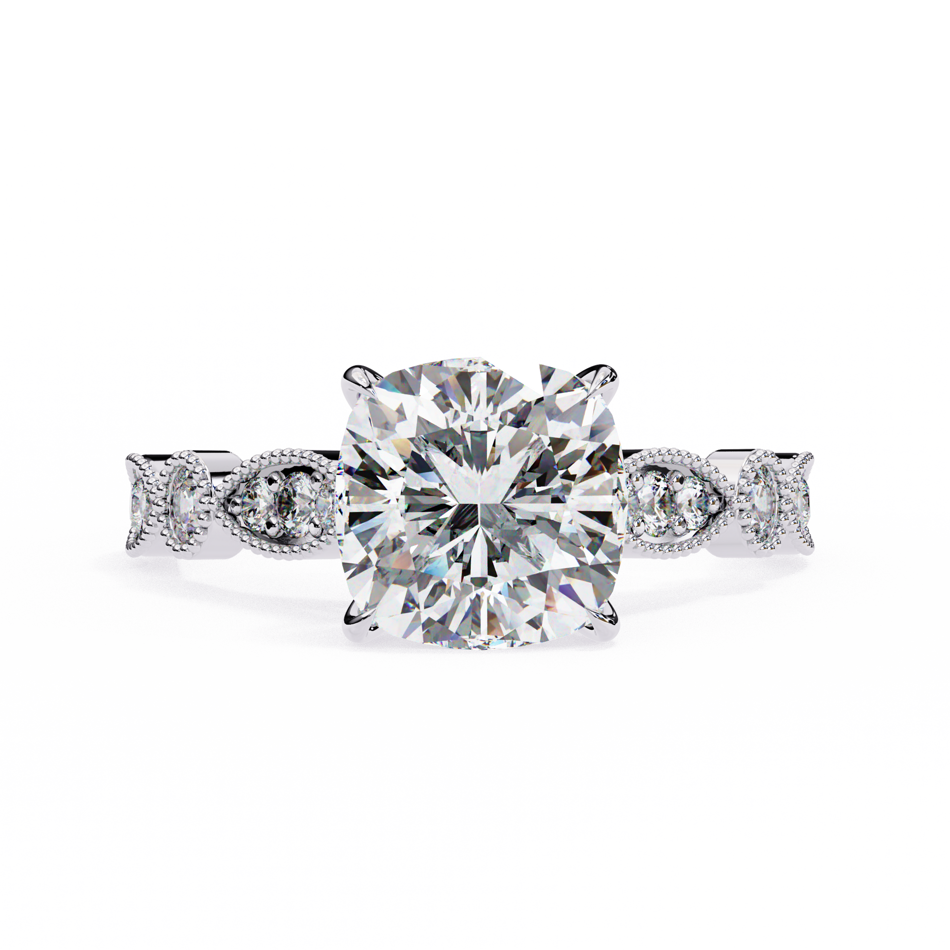 Luxury 2.50 Ct Cushion Cut Diamond Engagement Ring with vintage-inspired side stones. IGI Certified, E/F color, VVS/VS clarity. Free Worldwide Shipping.
