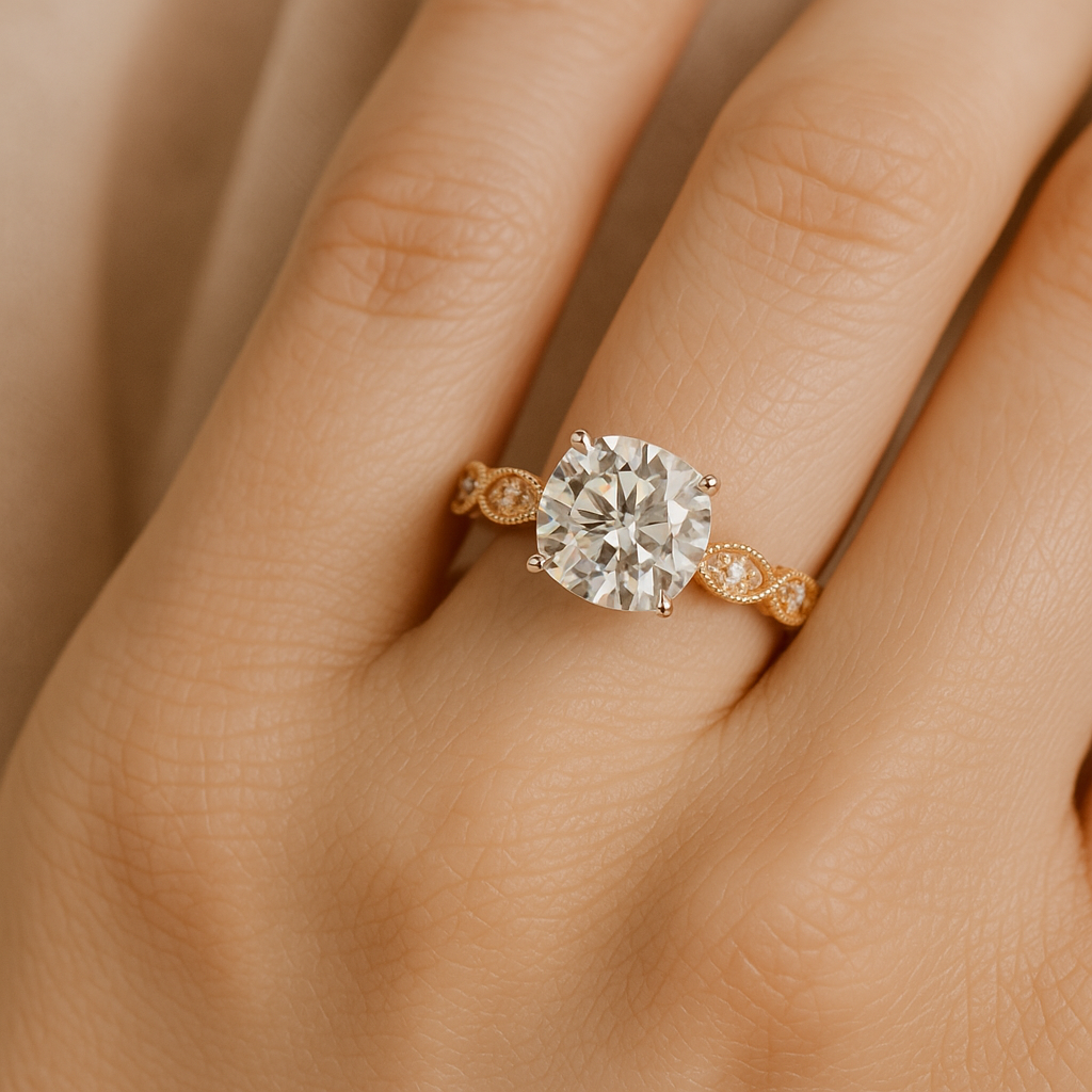 Make your love story timeless with this 2.50 Carat Cushion Cut Diamond Engagement Ring, designed with elegance and brilliance in mind. The IGI certified center stone (E/F color, VVS/VS clarity) radiates unmatched fire and sparkle, while the approx. 0.20 Ct side diamonds on a vintage-inspired band add a touch of sophistication and charm.
