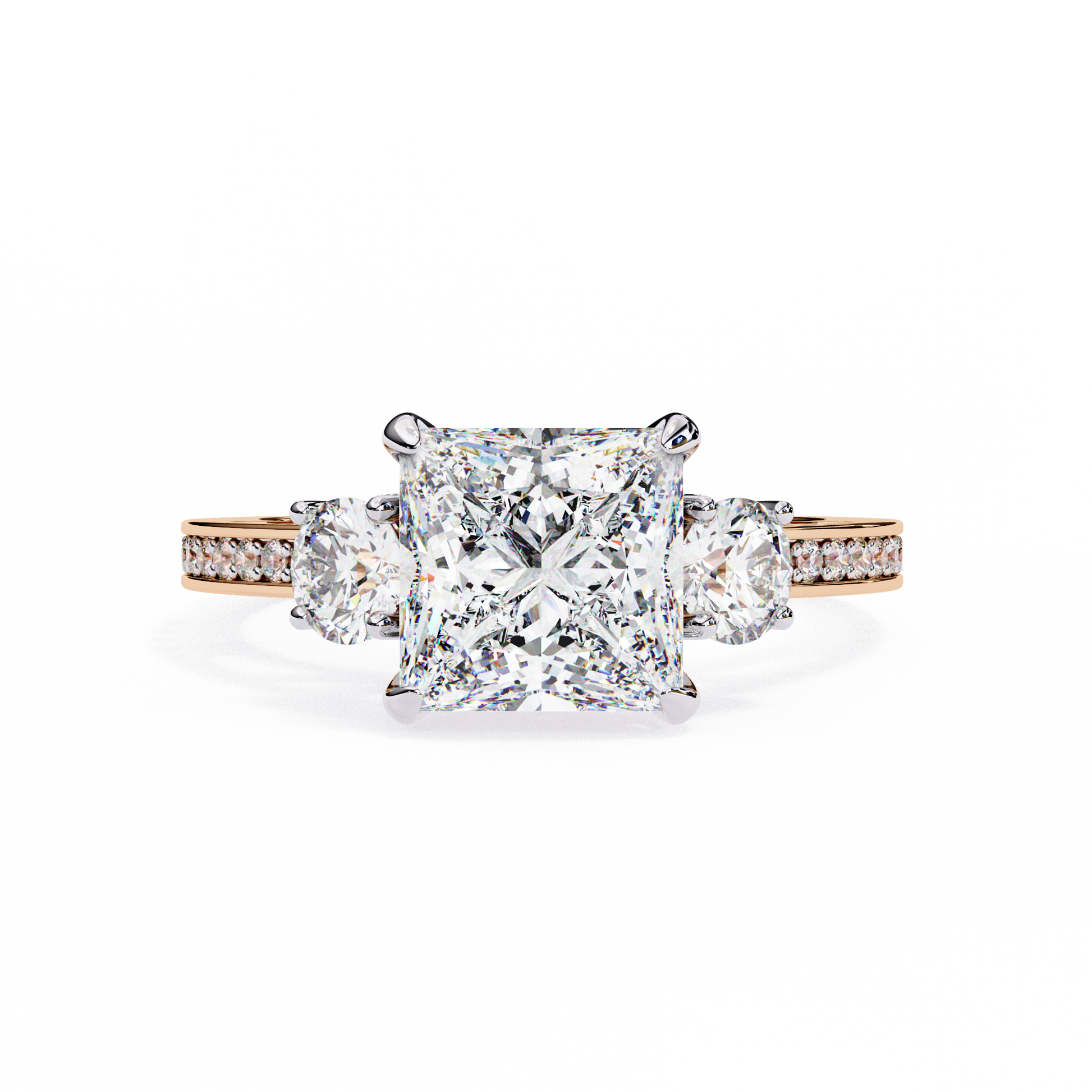 Main Stone: 2.50 Ct Princess Cut Diamond (IGI Certified)