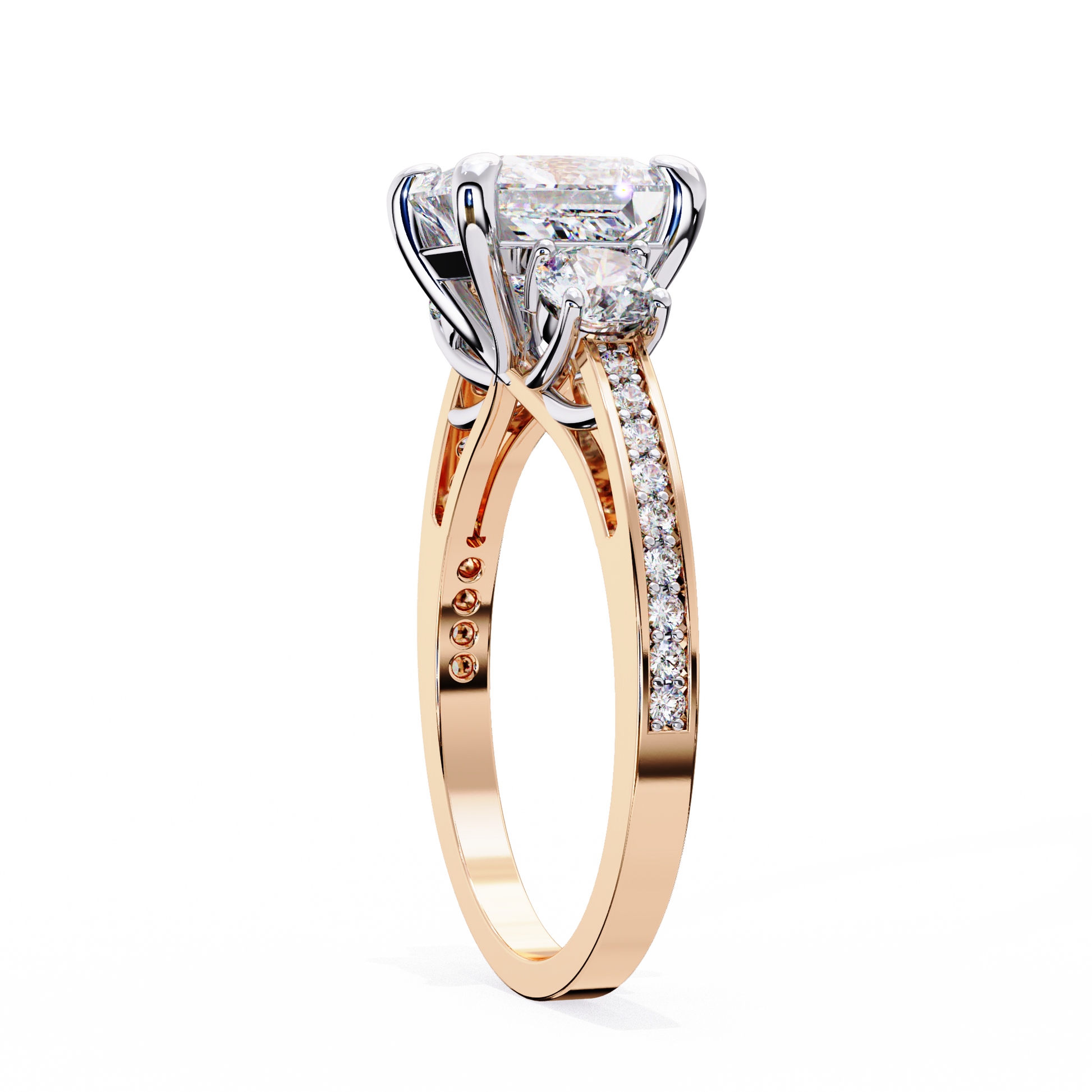 Design Style: Luxe three-stone with pavé accents
