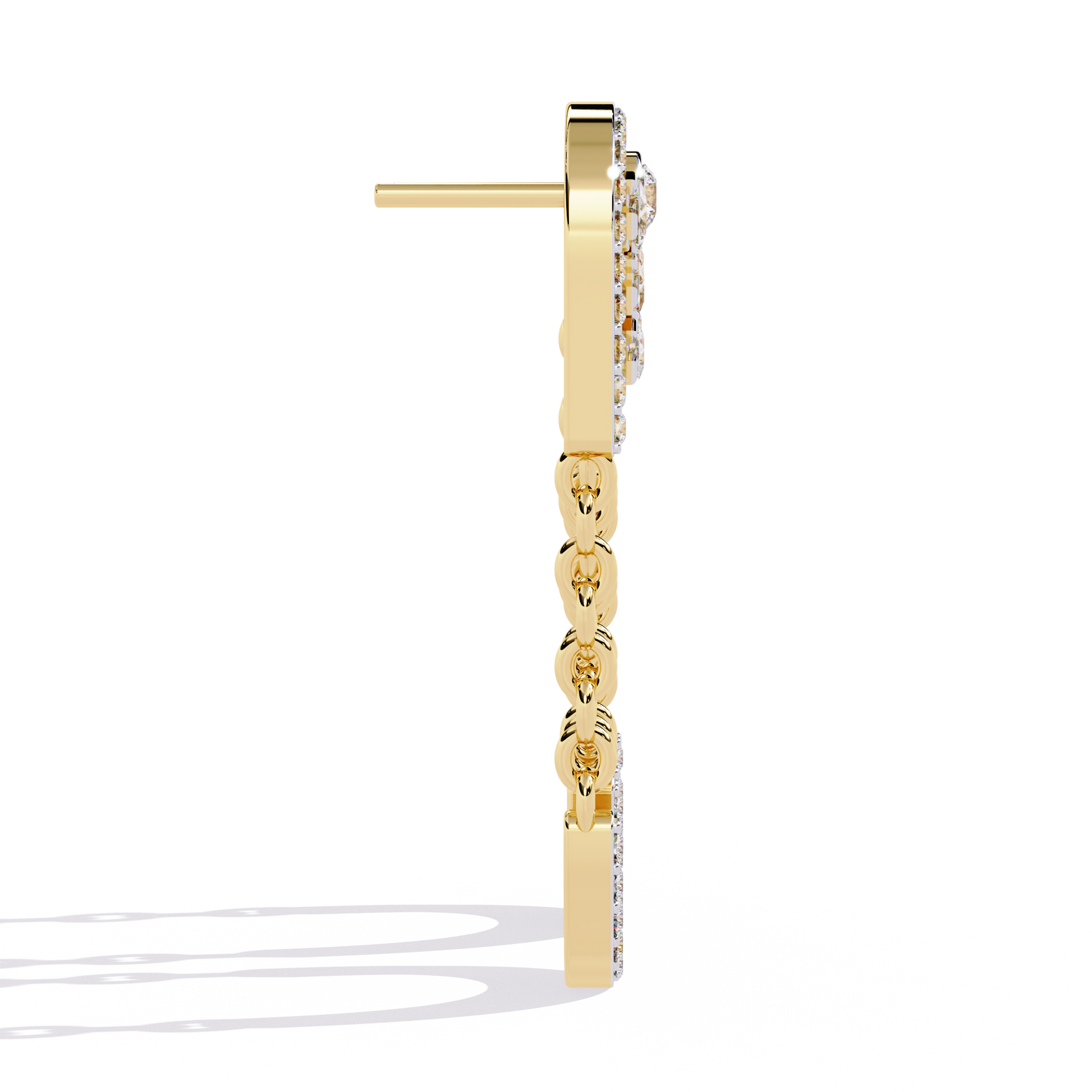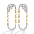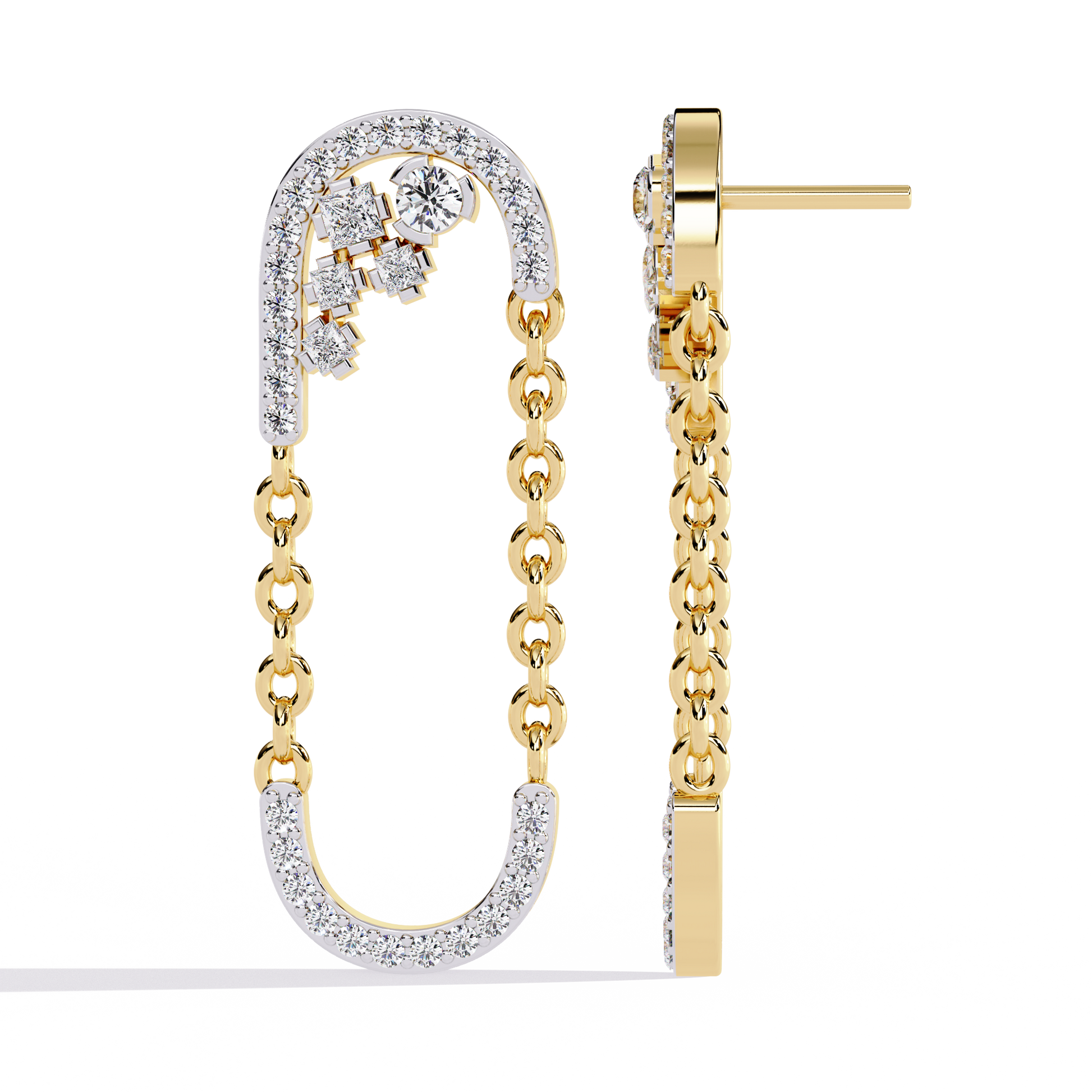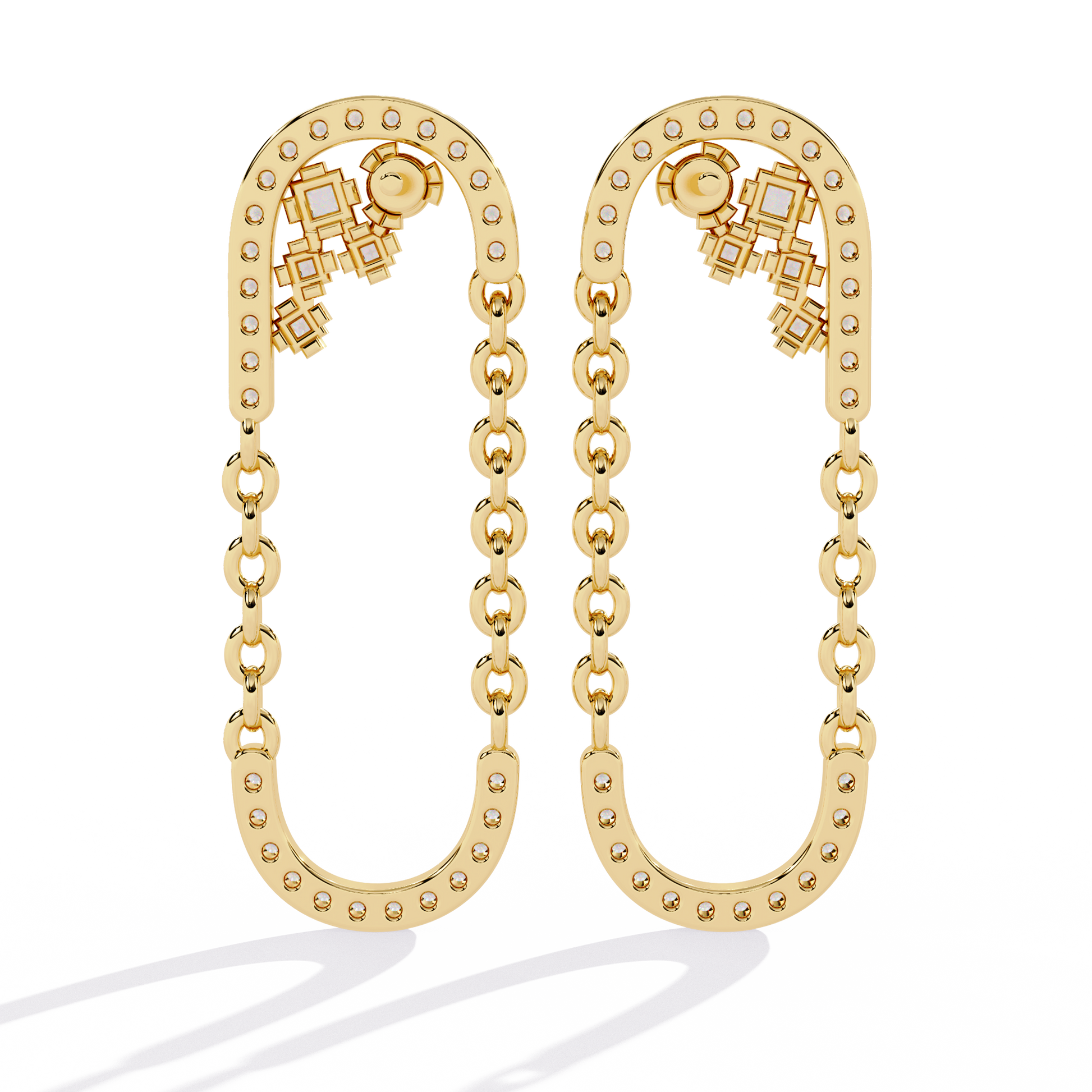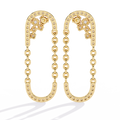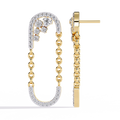 A bold yet refined link-inspired silhouette featuring a diamond-studded upper curve and a delicate gold chain drop. The modern open design creates movement and brilliance, making these earrings a perfect fusion of elegance and contemporary luxury.